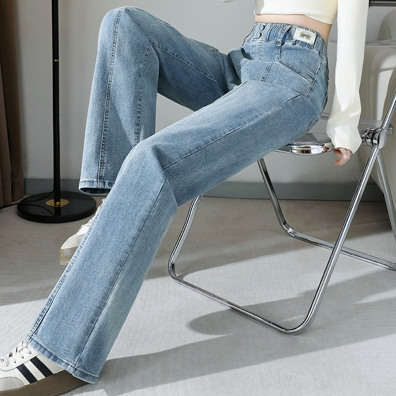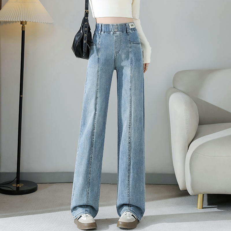 浅色牛仔直筒裤女春秋2025新款爆款高腰显瘦松紧腰休闲窄版阔腿裤
