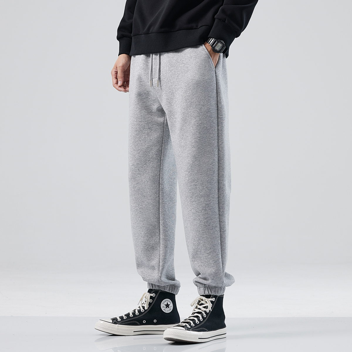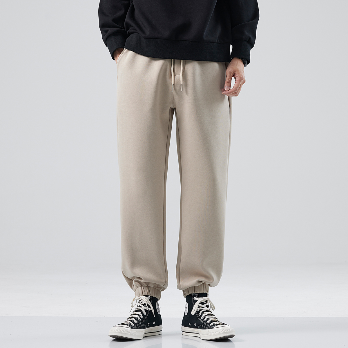 hansca束脚休闲卫裤男秋季2025新款抽绳简约纯色青少年宽松长裤子