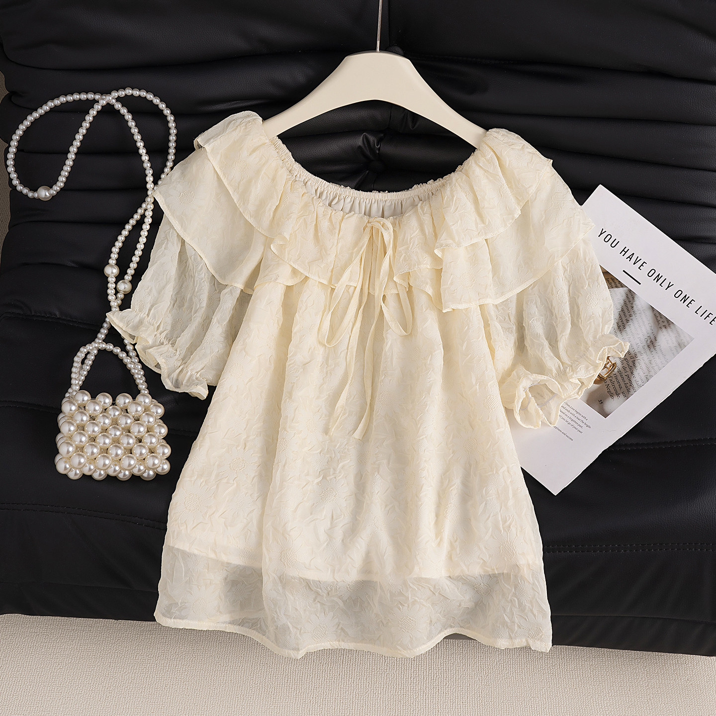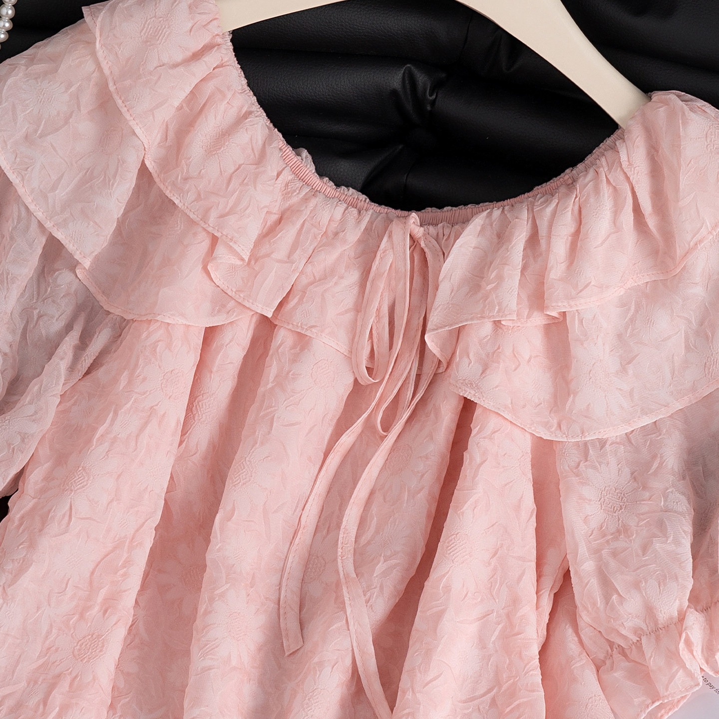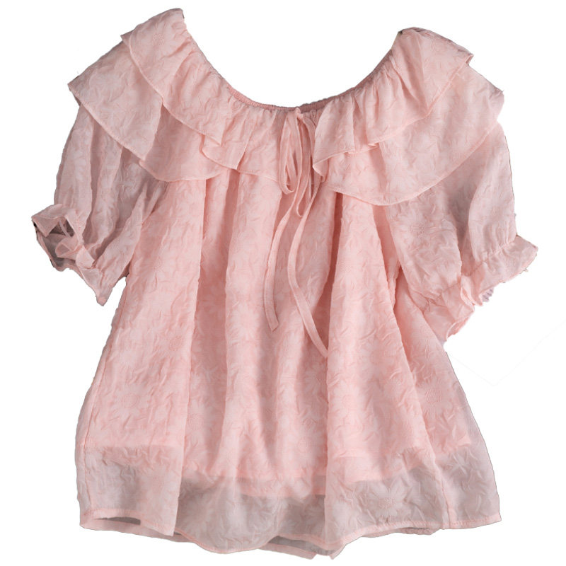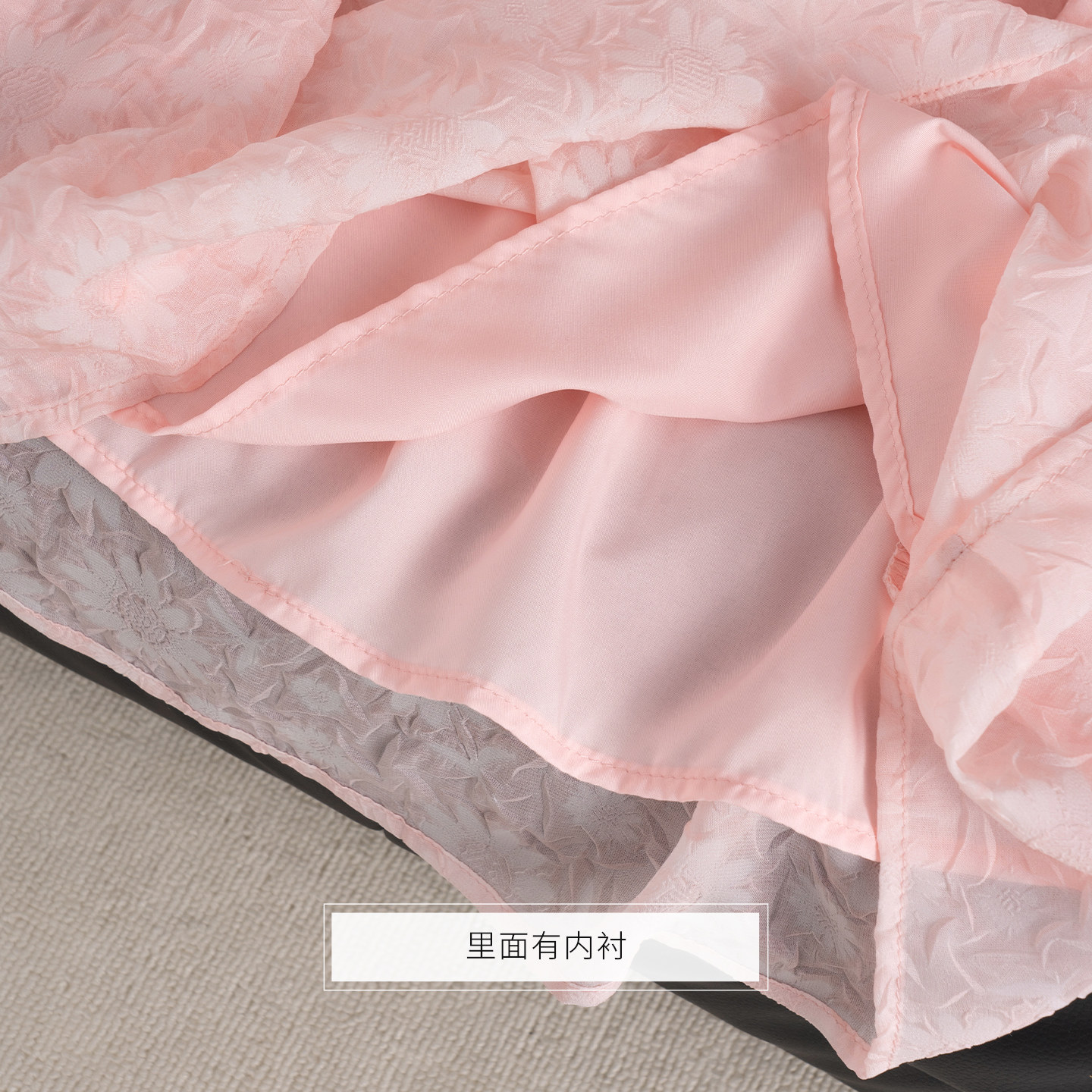 粉色漂亮独特压花雪纺衫女夏季2025新款遮肉显瘦短袖t恤衬衫上衣