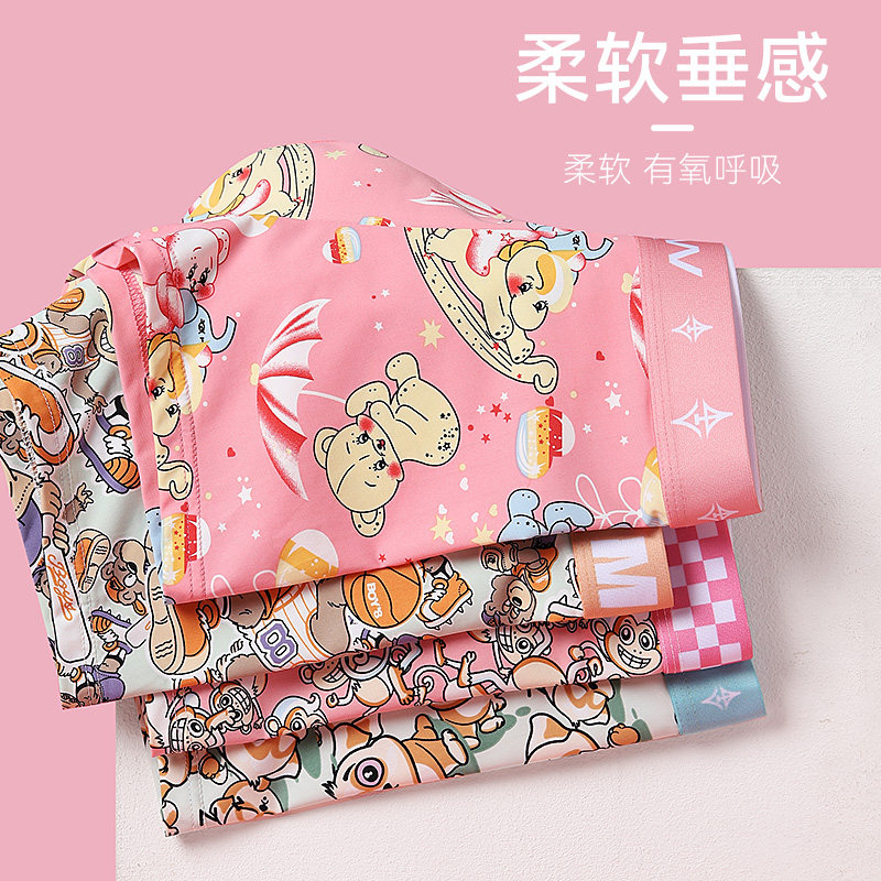 猫人男士内裤冰丝凉感男生粉色四角裤卡通猛男青少年夏季平角短裤