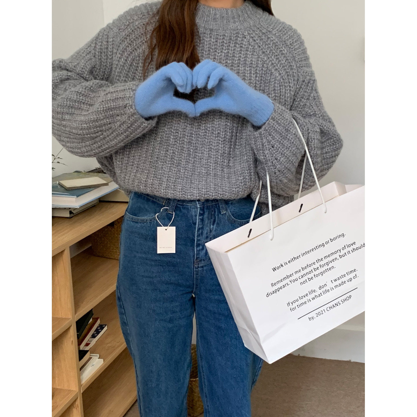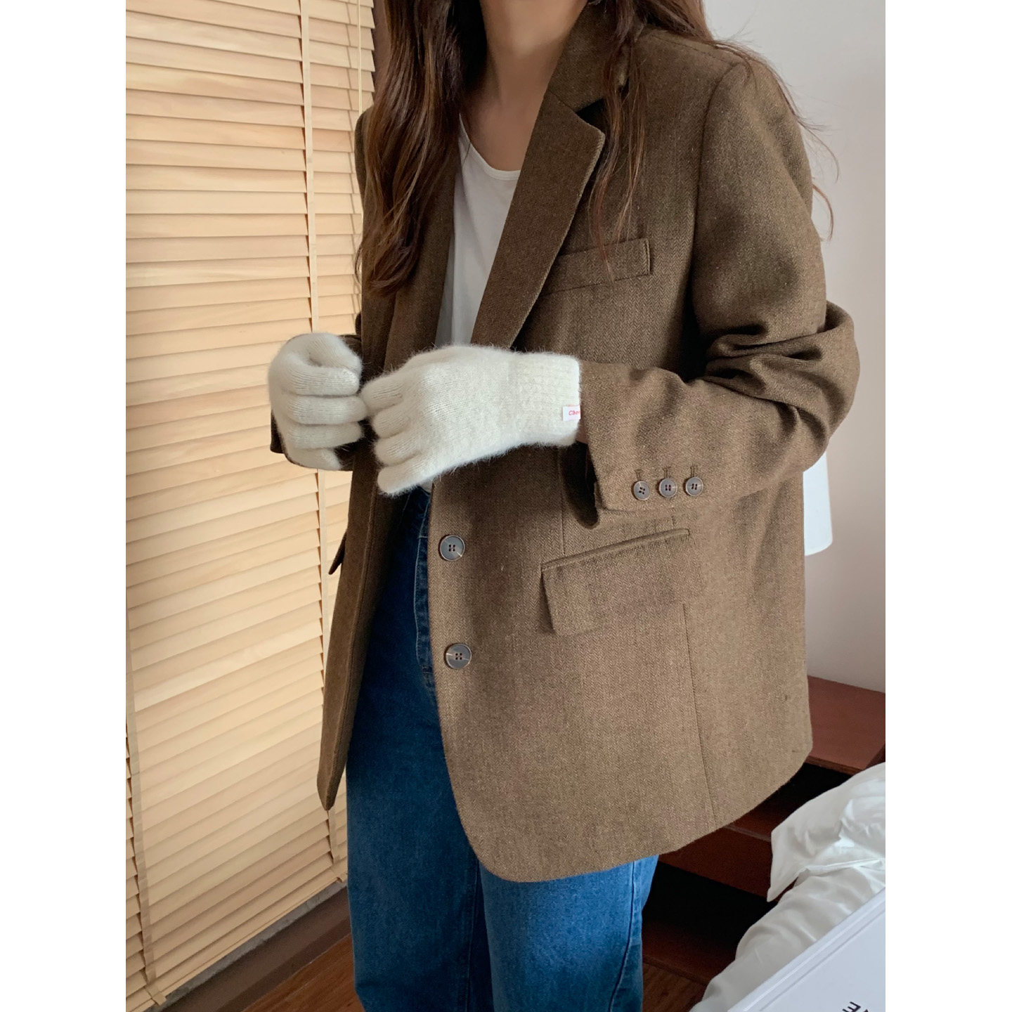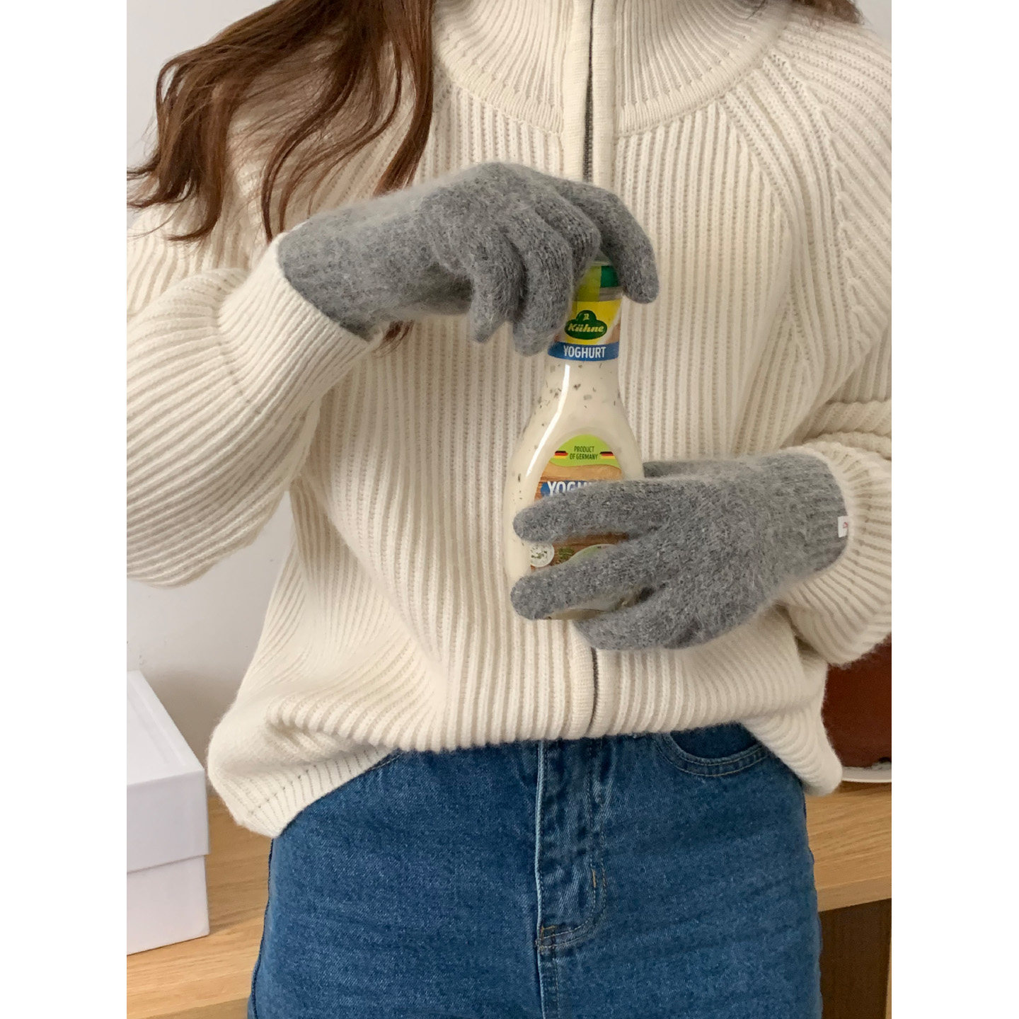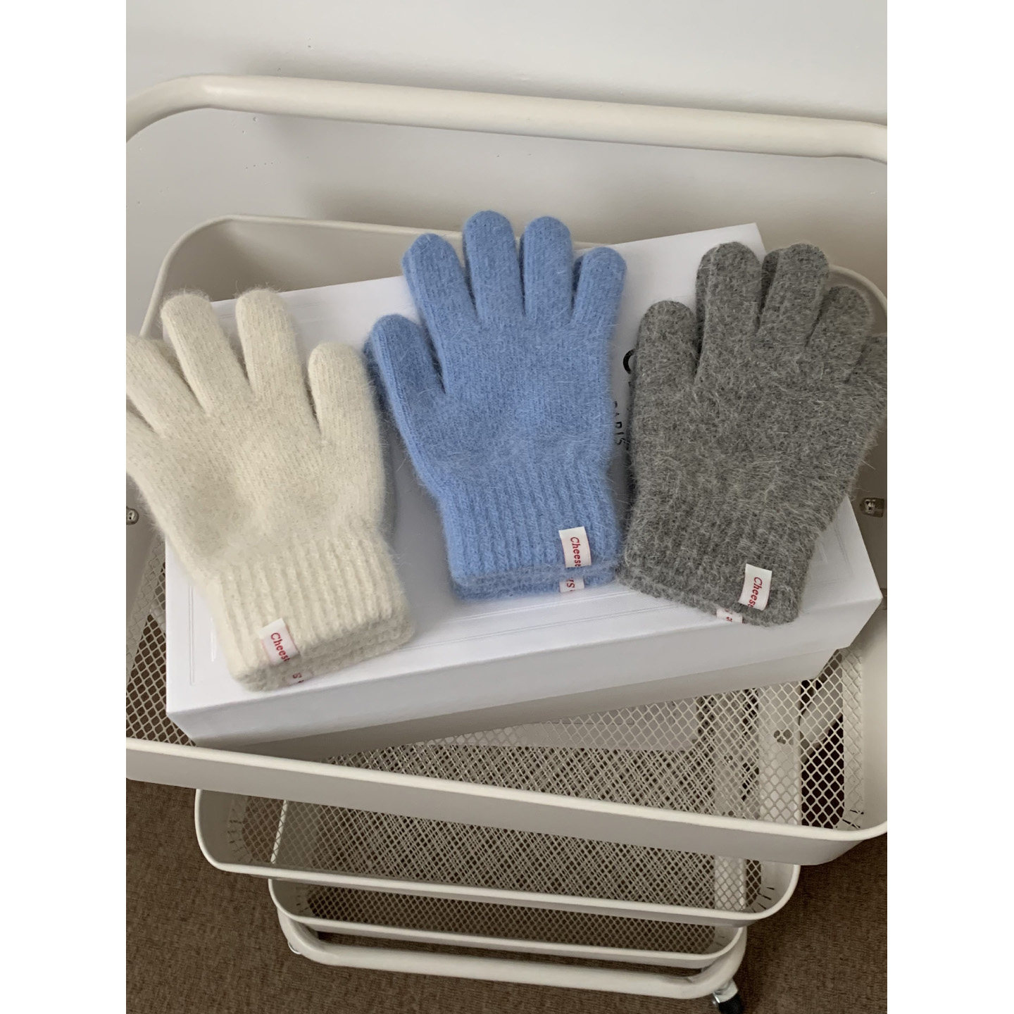 芝士商店韩版纯色兔毛毛感手套女