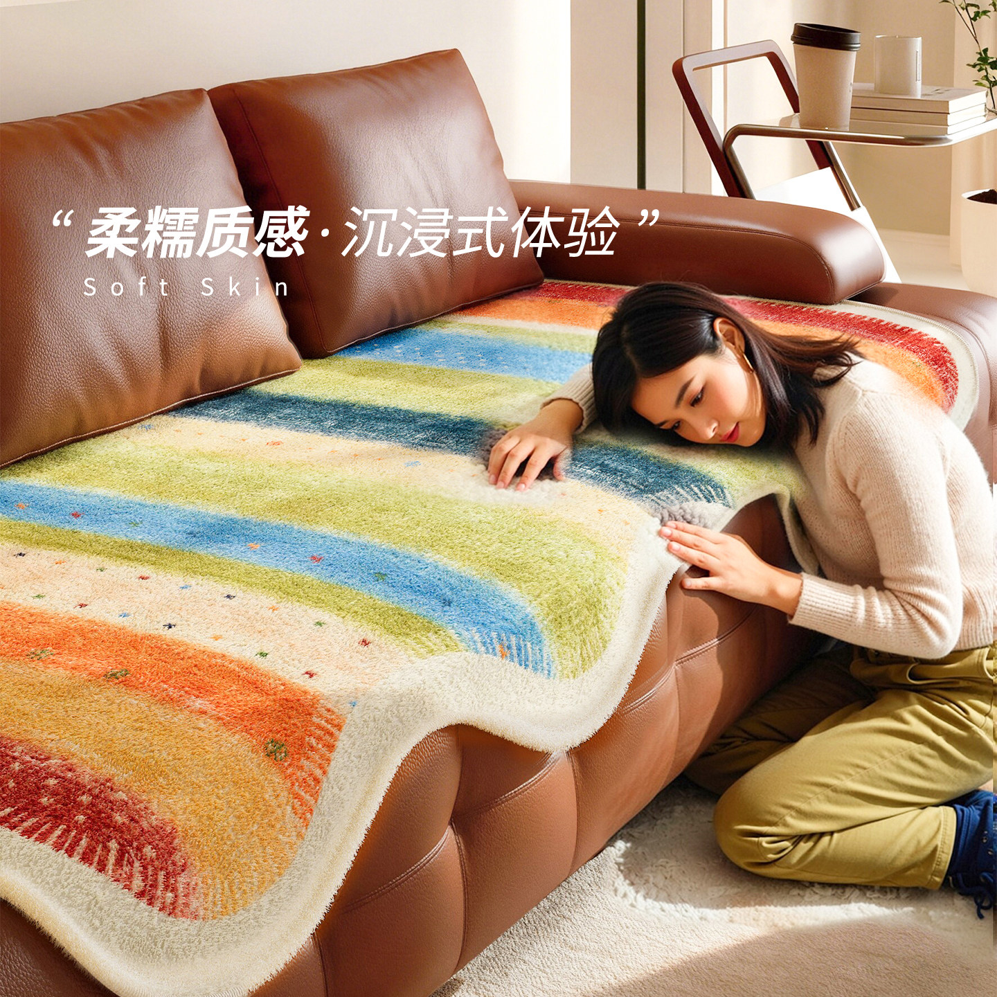 多巴胺异形沙发垫冬2025新款加厚毛绒沙发盖布高级感皮沙发坐垫子