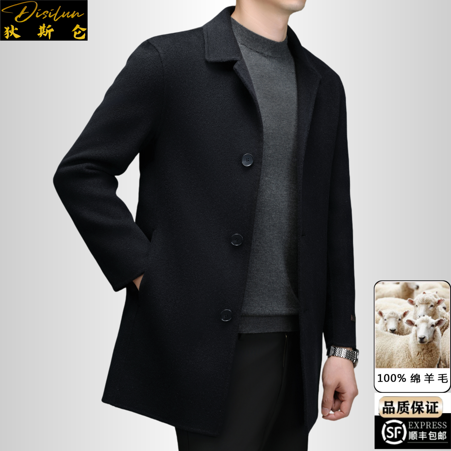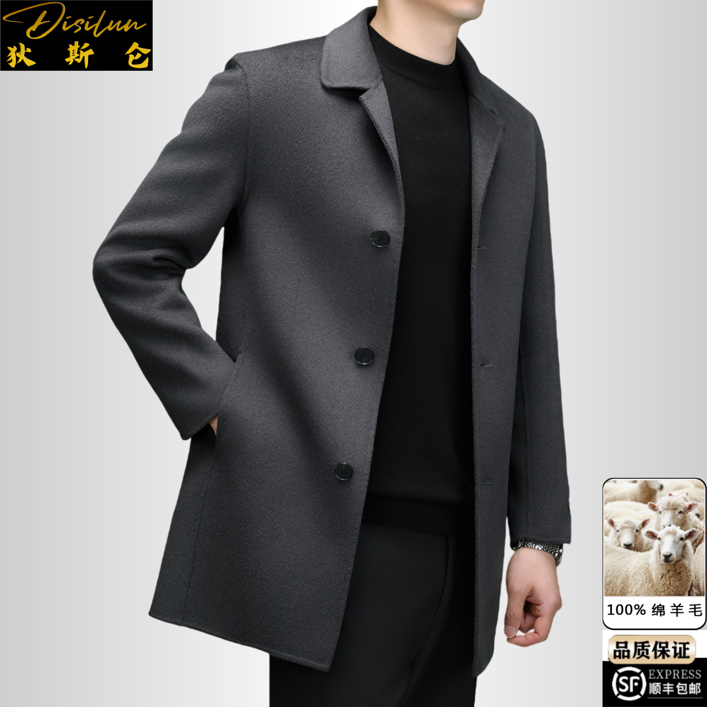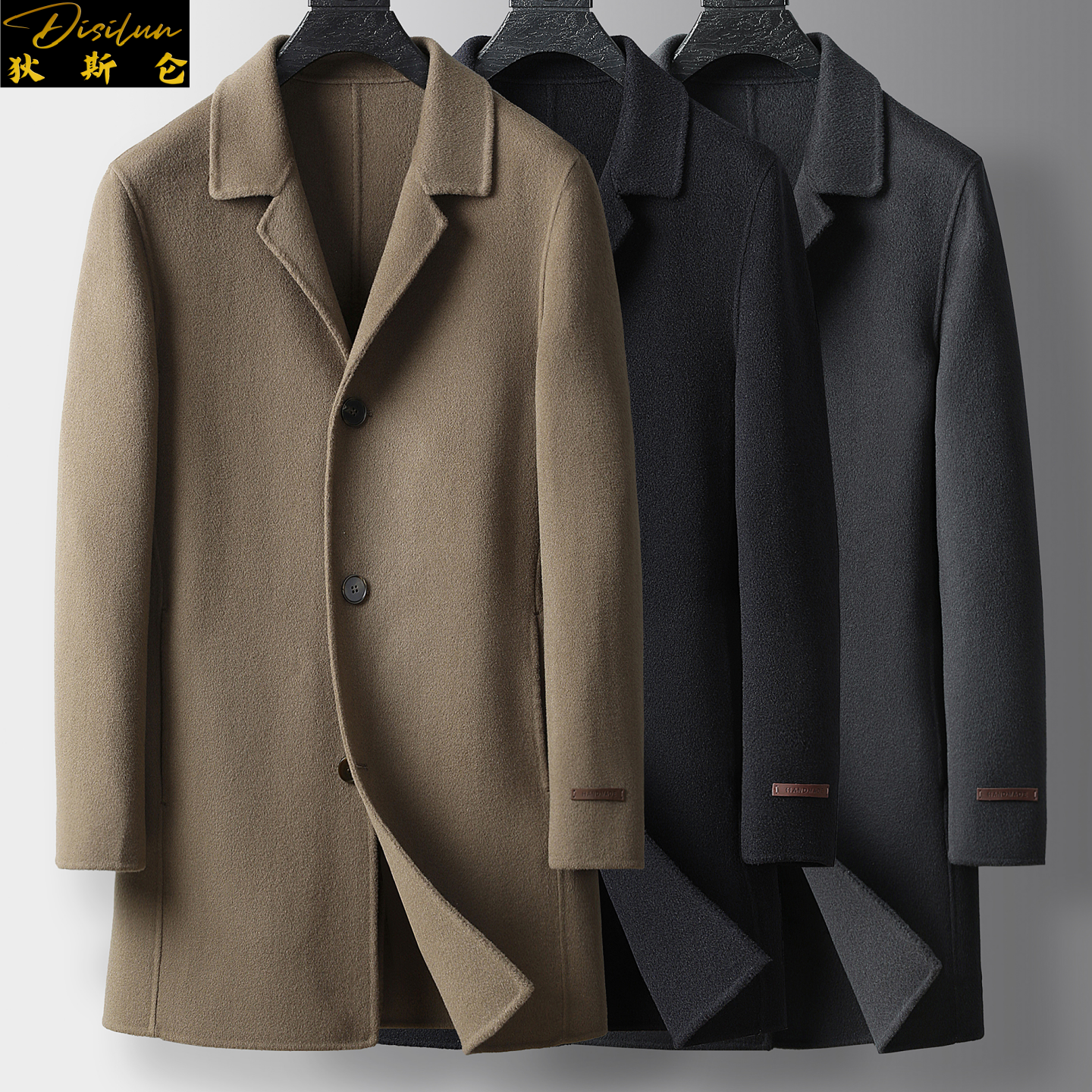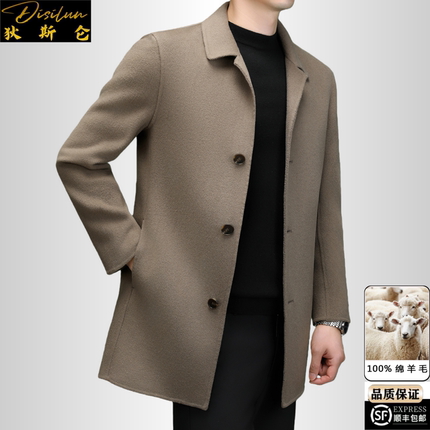 狄斯仑高端羊绒双面呢大衣男士秋冬季中年商务休闲羊毛中长款外套
