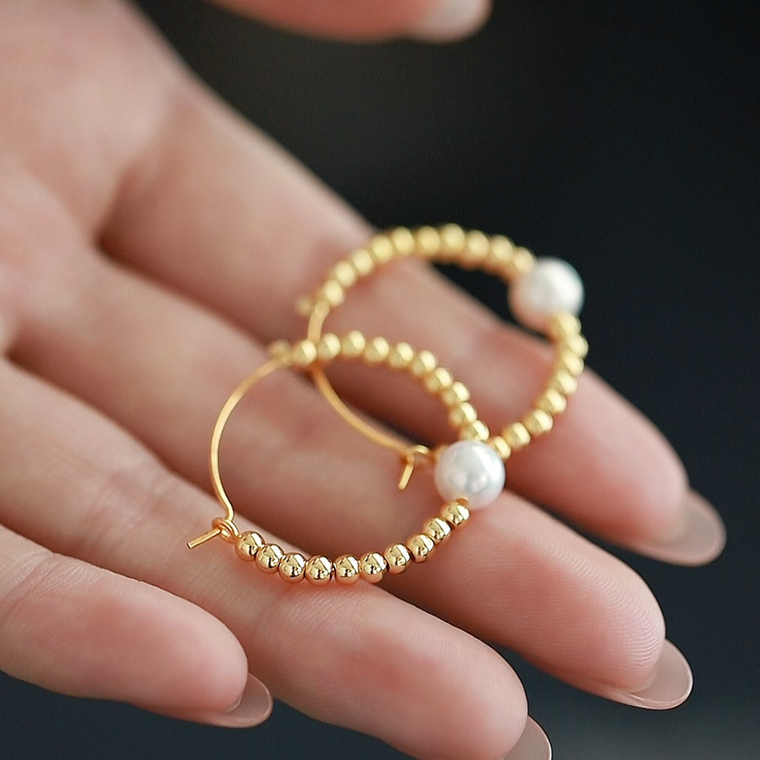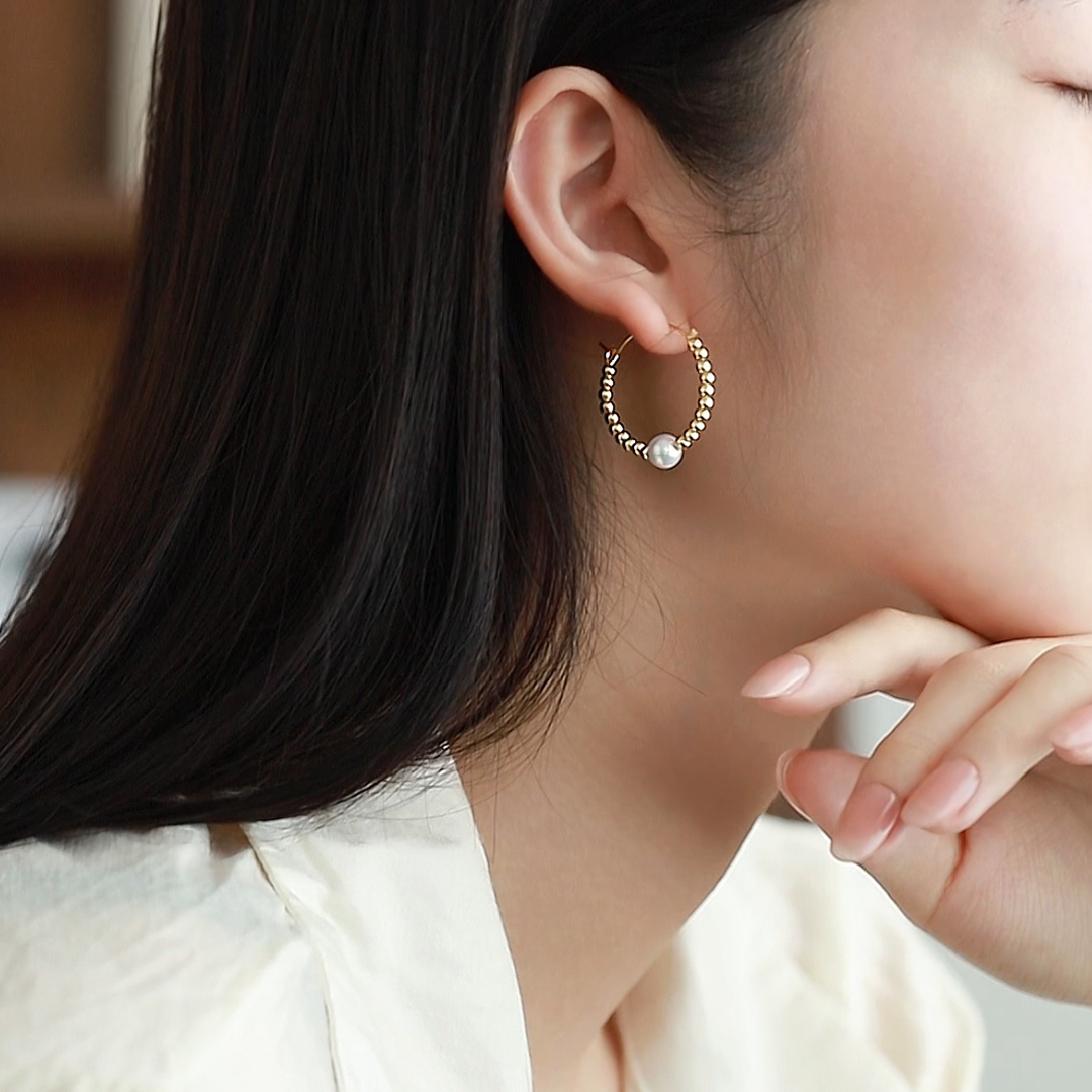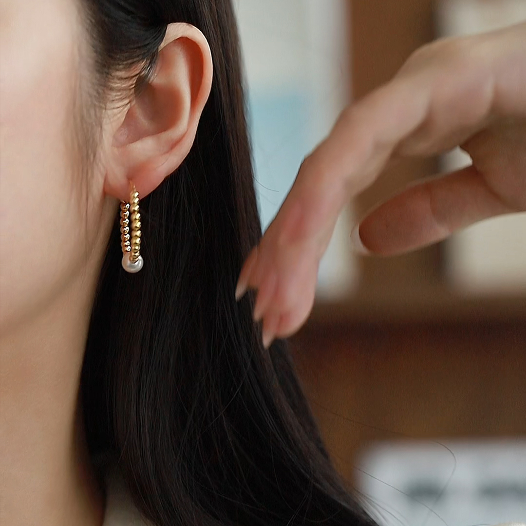 珍氏珠宝天然淡水珍珠耳圈女款秋冬 轻奢气质小众设计耳环耳饰