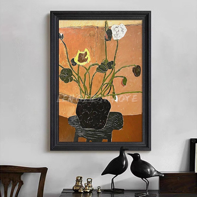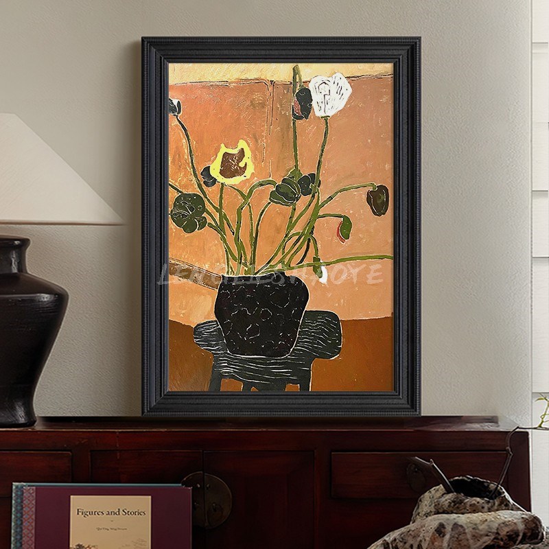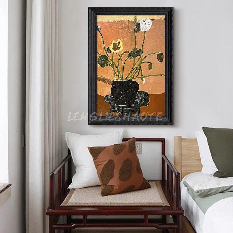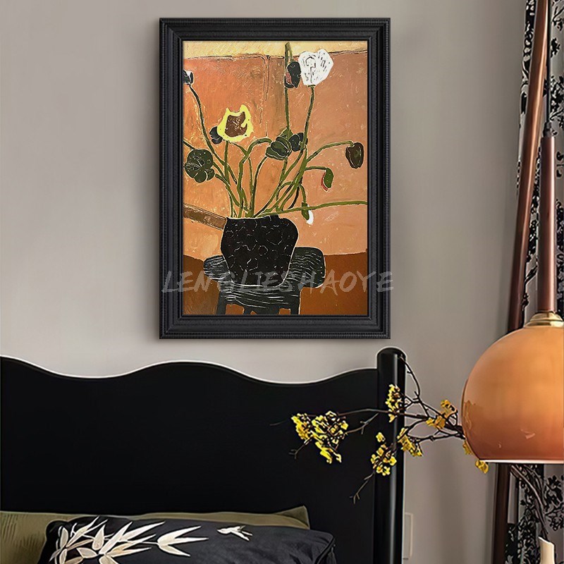 高级感抽象静物花瓶客厅餐厅玄关装饰挂画法式中古风竖版手绘油画