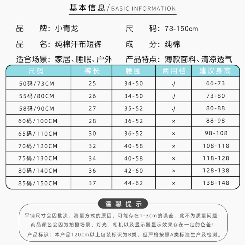 小青龙儿童五分短裤纯棉外穿男女童家居小孩全棉中大童夏宝宝内裤