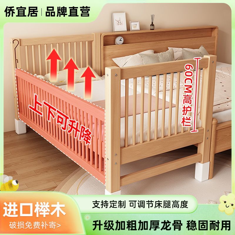 全榉木拼接床儿童床实木婴儿床加宽拼接大床小孩床边床儿童拼接床