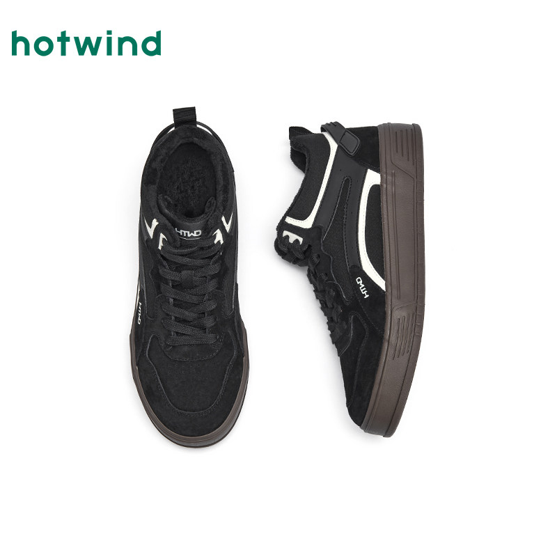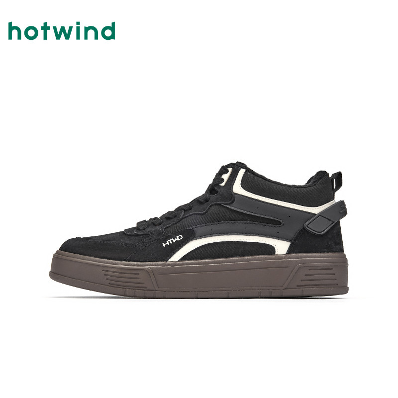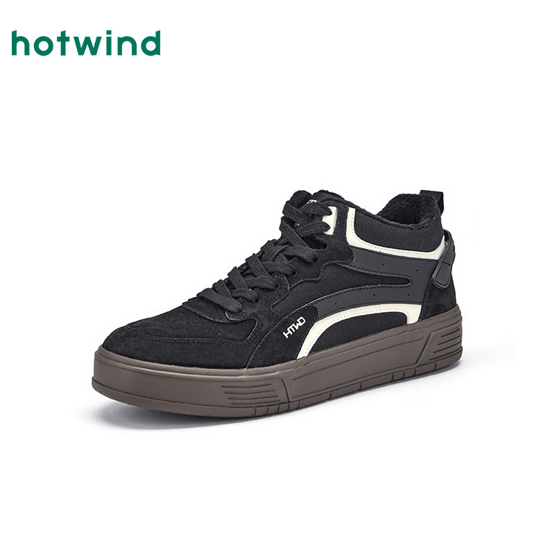 热风男鞋2025年冬季新款男士日常通勤休闲板鞋百搭厚底高帮鞋子
