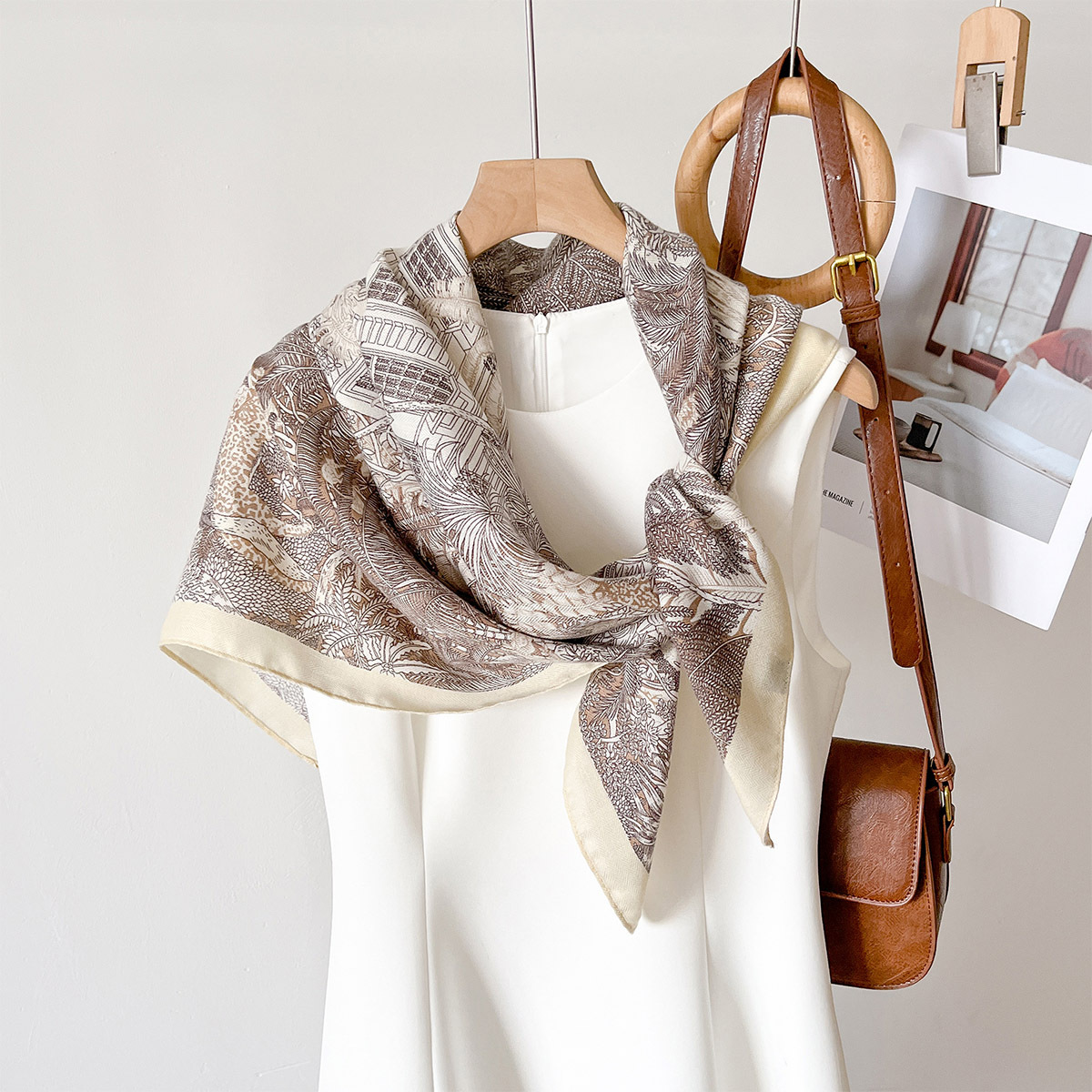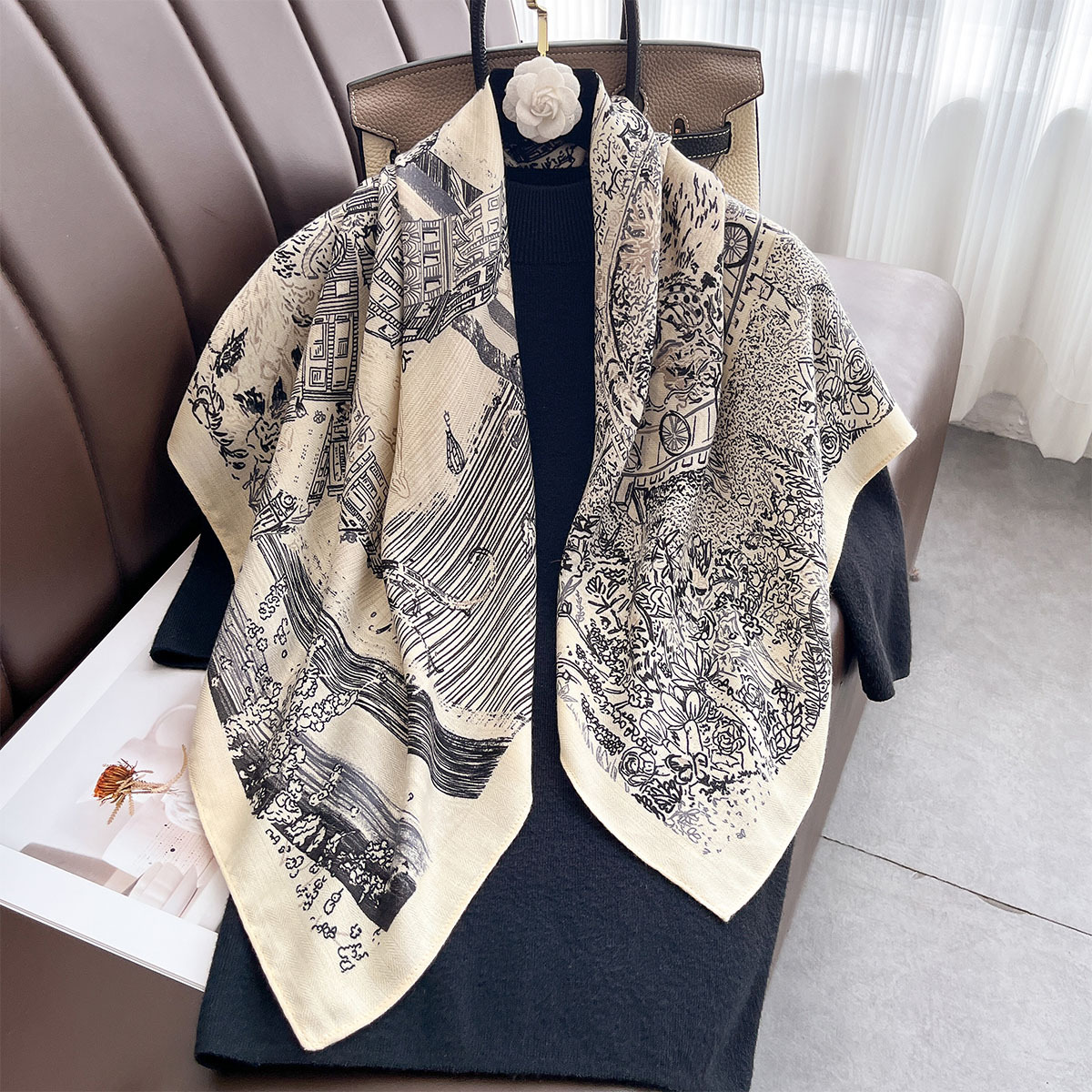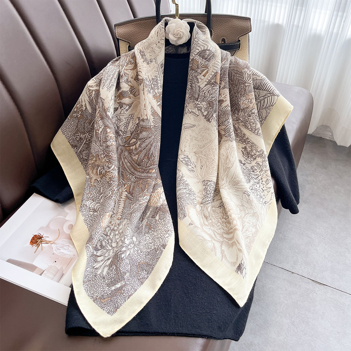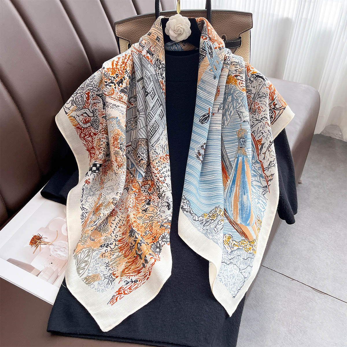 春秋新款个性时髦丝绒棉90方巾丝巾女士百搭护颈围脖披肩外搭围巾