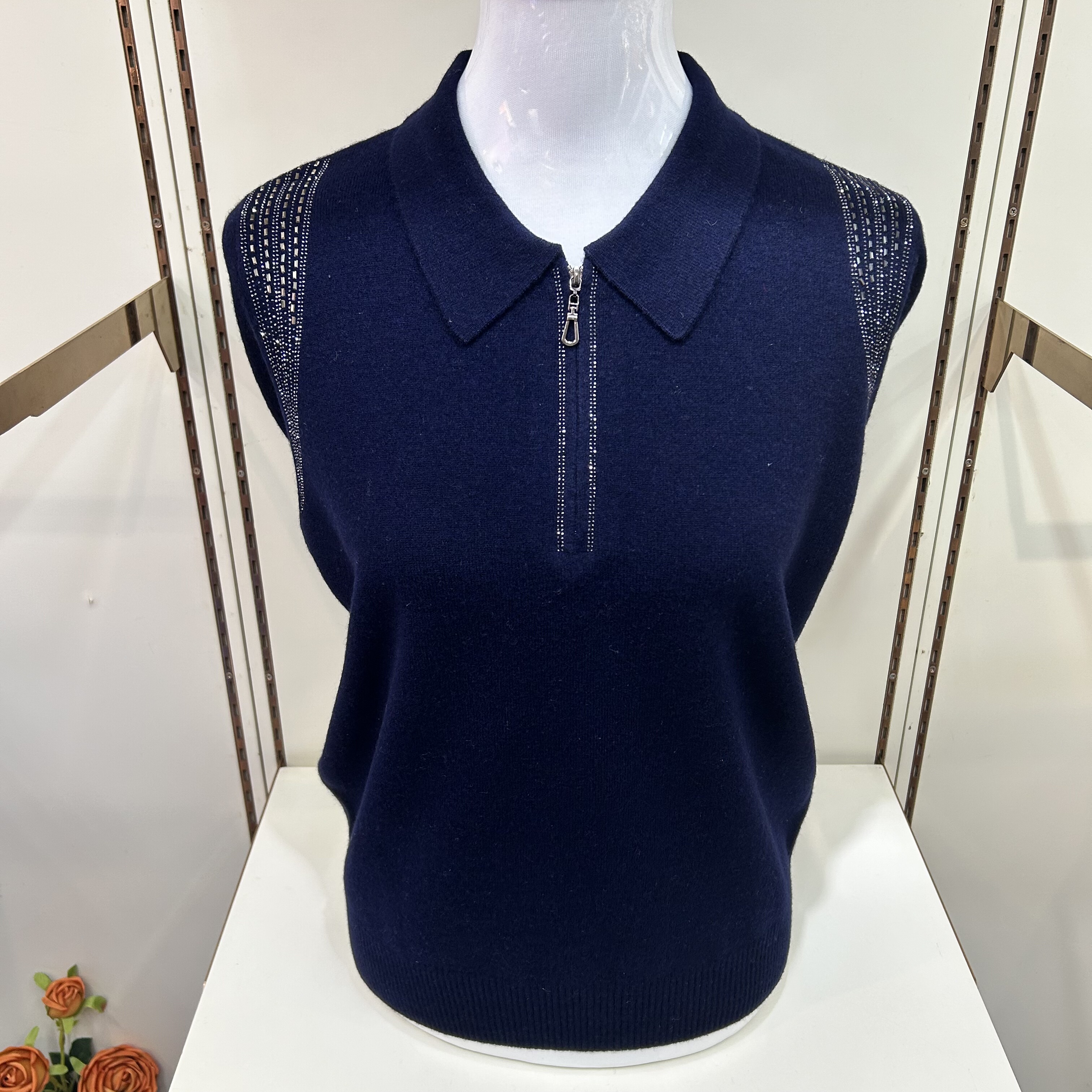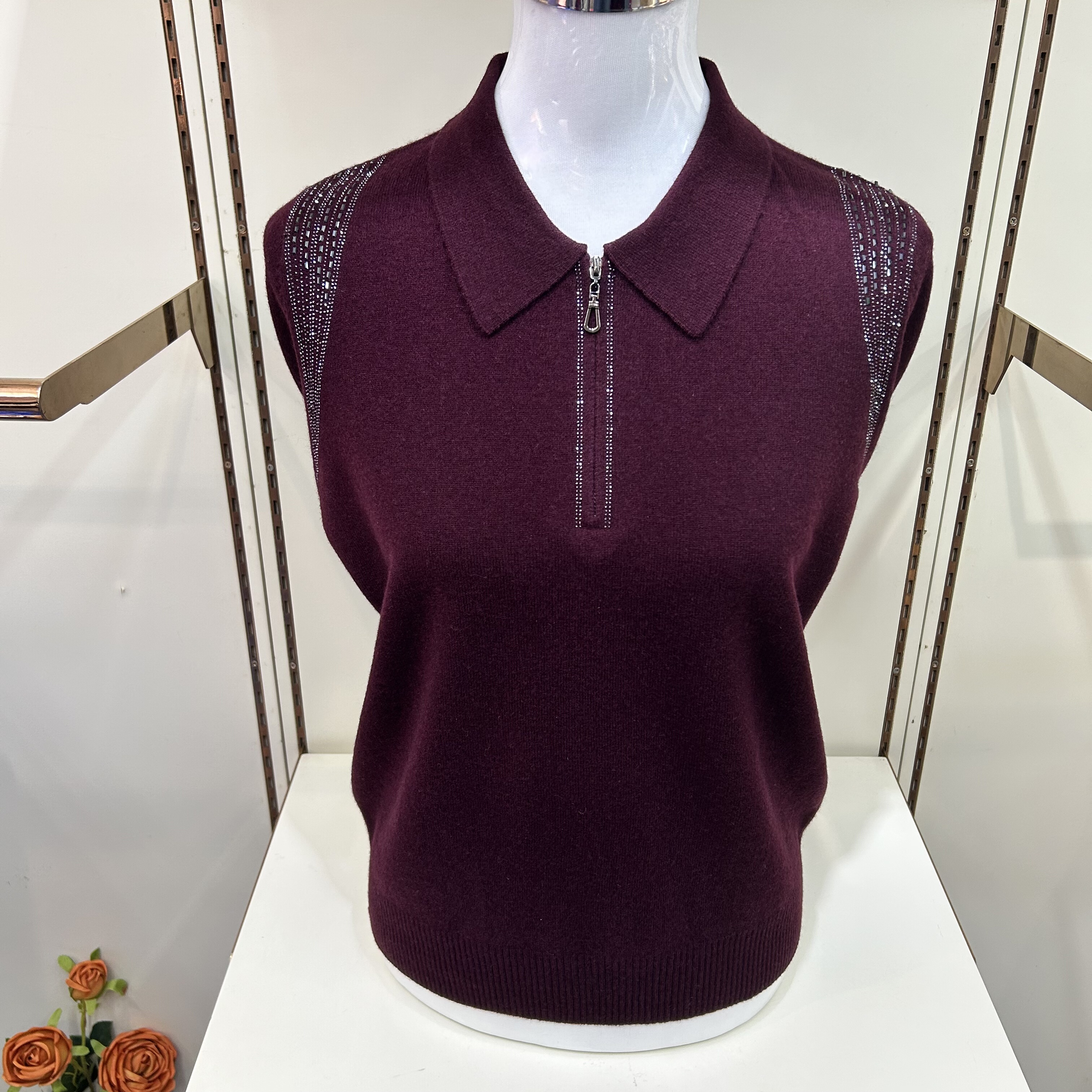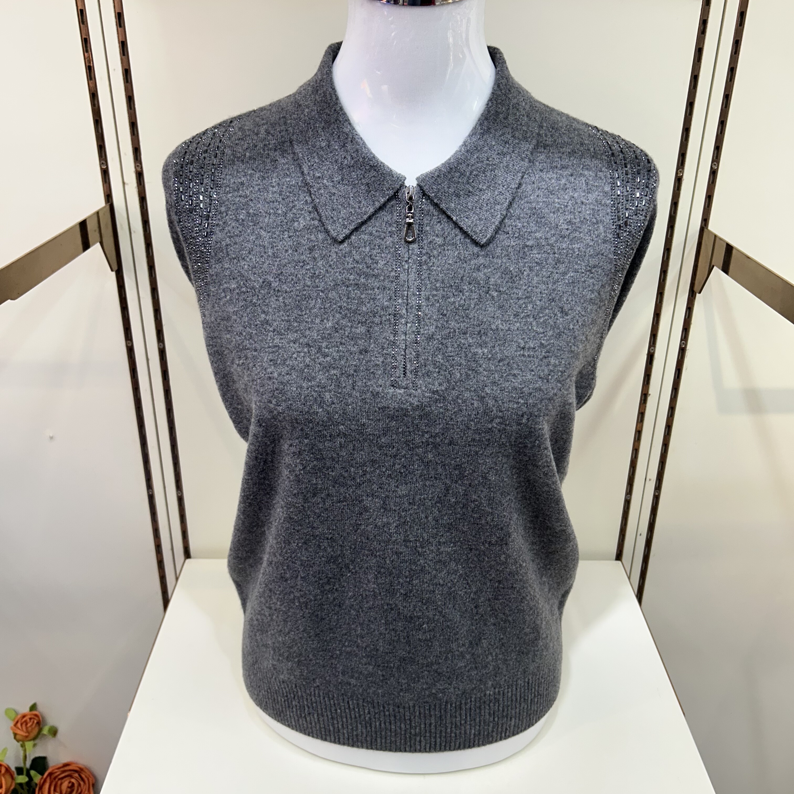 中老年妈妈秋冬装100纯羊毛衫女镶钻2025新上衣翻领打底针织毛衣