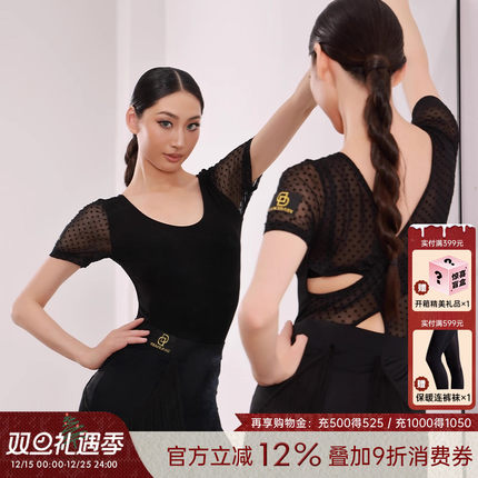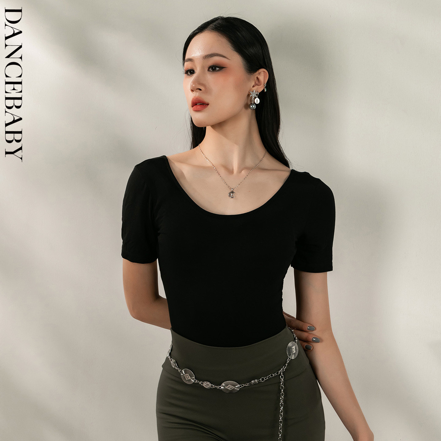 Dancebaby拉丁舞服女成人舞蹈上衣新款短袖跳舞衣漏背练功服YS49