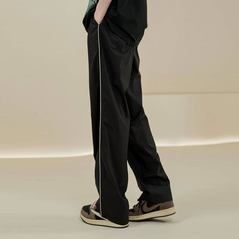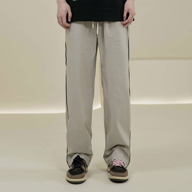 烦恼的Octopusl夏季轻薄透气条纹长裤直筒宽松垂感冰丝西裤子男潮