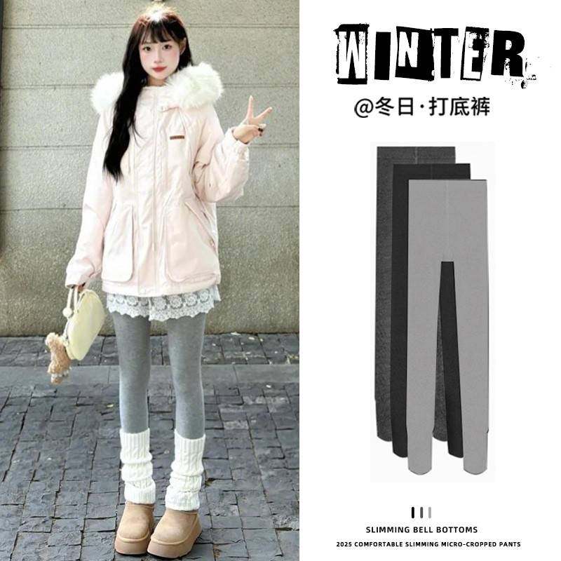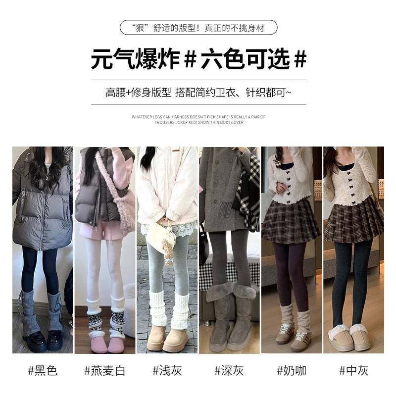 灰色加绒打底裤女外穿冬季2025新款高腰紧身秋裤保暖加厚踩脚棉裤