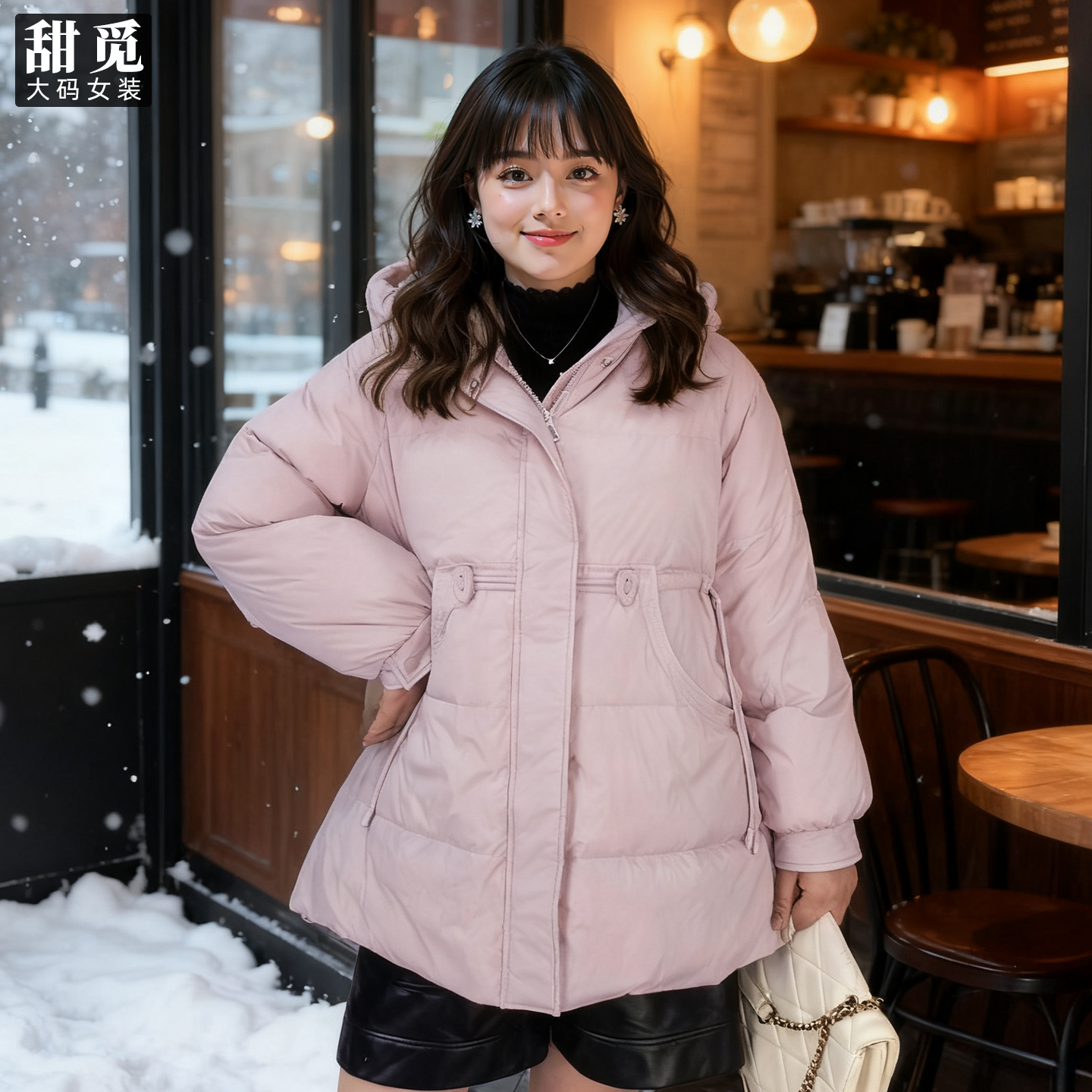 甜觅特大码女装冬装胖mm280斤时尚减龄洋气加厚中长款连帽羽绒服