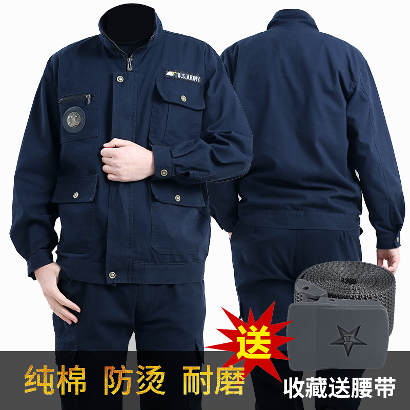 电焊工作服男纯棉春秋劳保套装长袖上衣外套工装耐磨防烫建筑工地