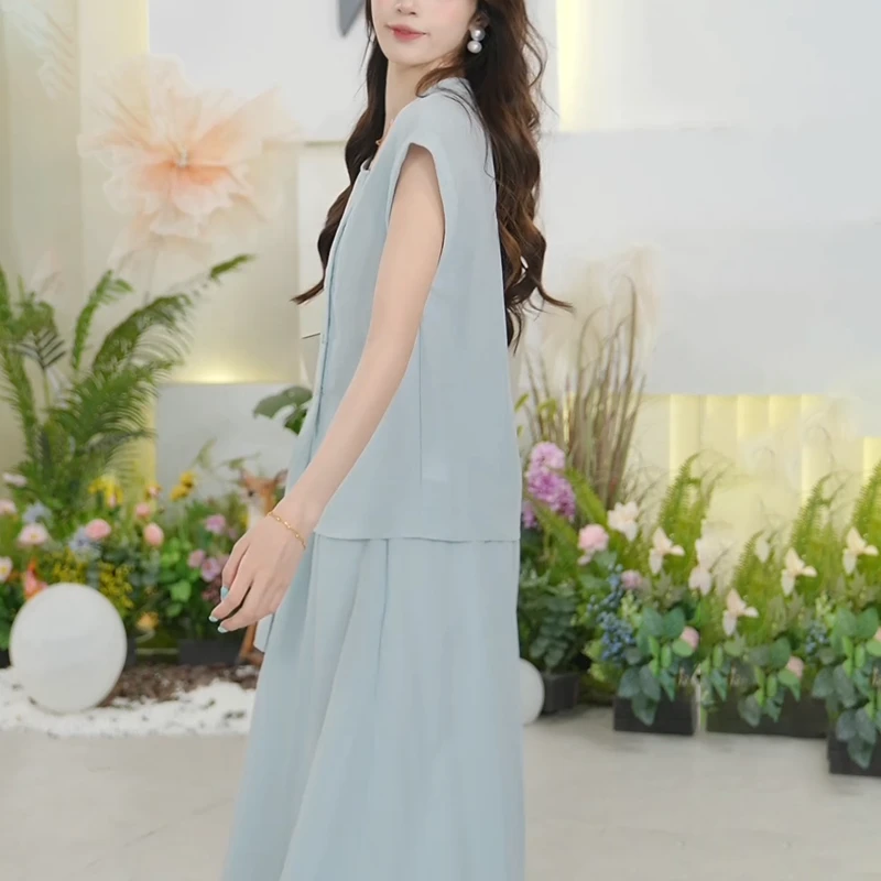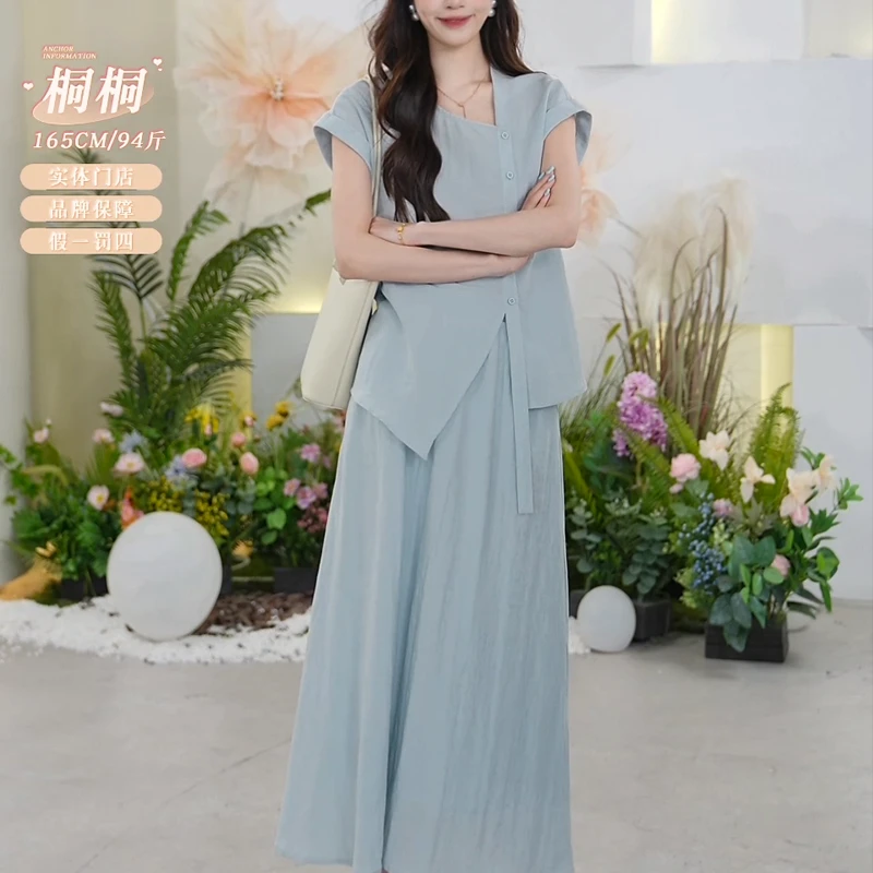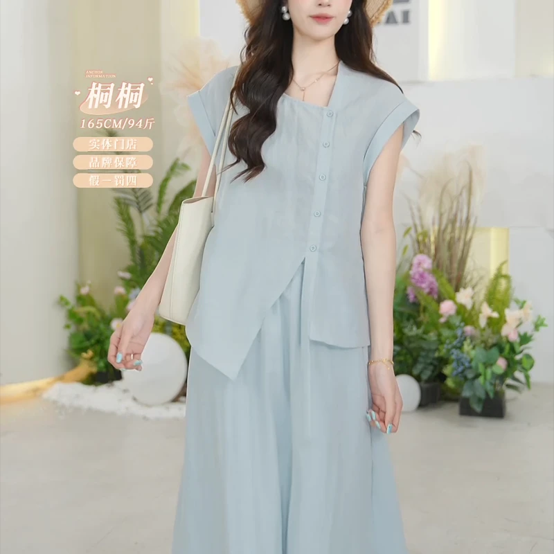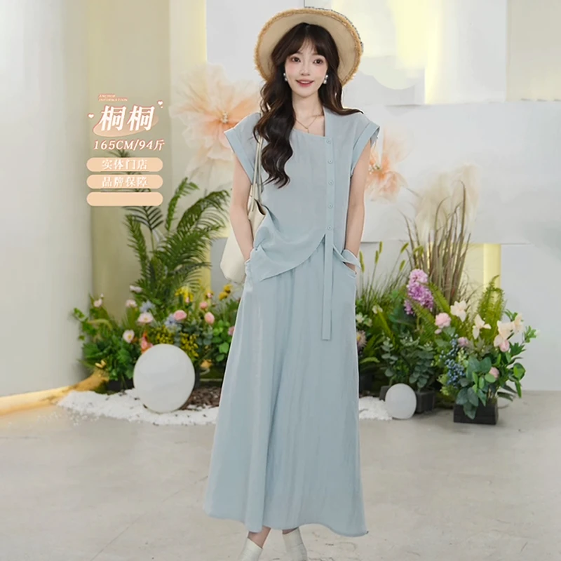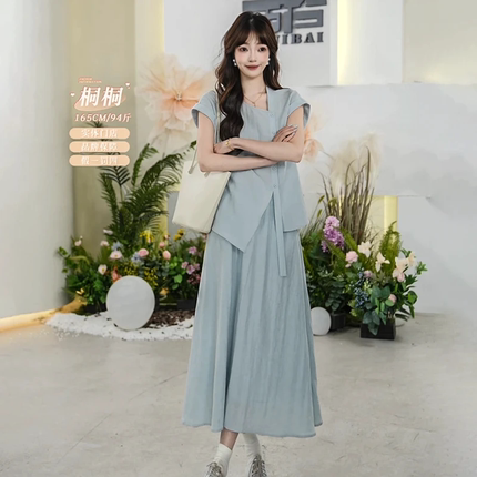 夏新款莱赛尔亚麻混纺衬衫套装裙