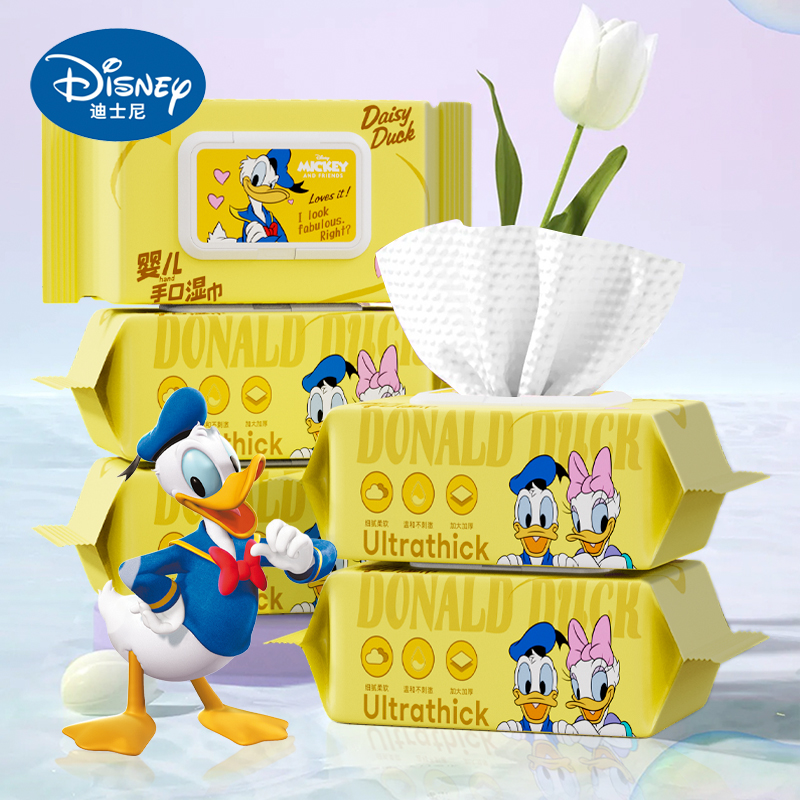 迪士尼唐老鸭湿巾婴儿手口专用湿巾纸纯水清洁家庭实惠装湿纸巾