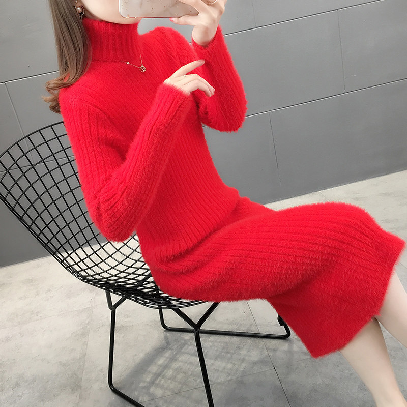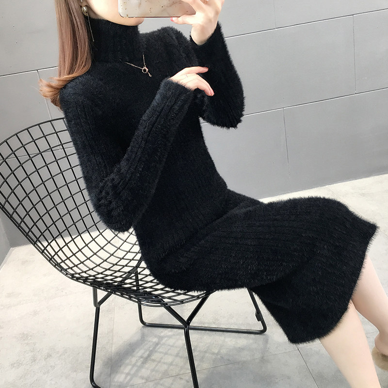 中长款水貂绒毛衣女冬季加厚2024新款修身内搭配大衣的打底毛衣裙