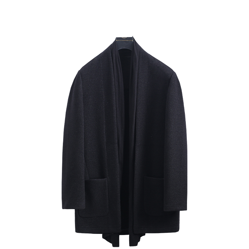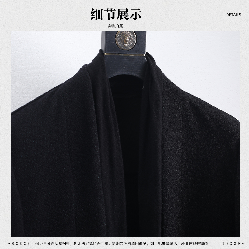 时尚围巾领中长款针织大衣潮男秋冬外套开衫修身免烫上衣帅G3Q05