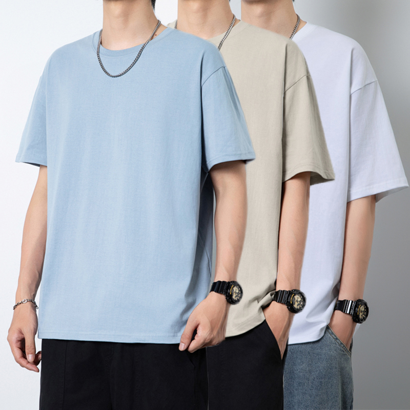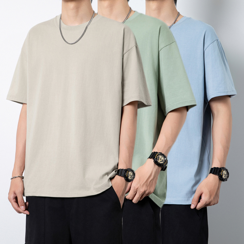 以纯YISHION重磅t恤男士短袖夏季圆领休闲纯色上衣潮流ins半袖宽