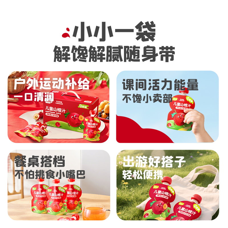 英氏忆小口0蔗糖苹果山楂汁儿童果汁酸甜解暑0色素饮品饮料便携