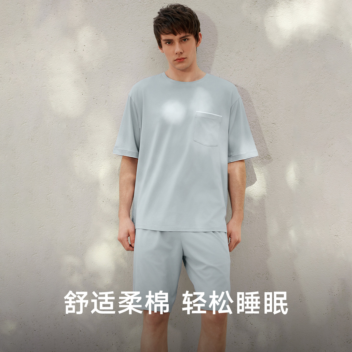 曼妮芬男士睡衣短袖短裤春夏薄款宽松棉质凉感家居服起居服套装