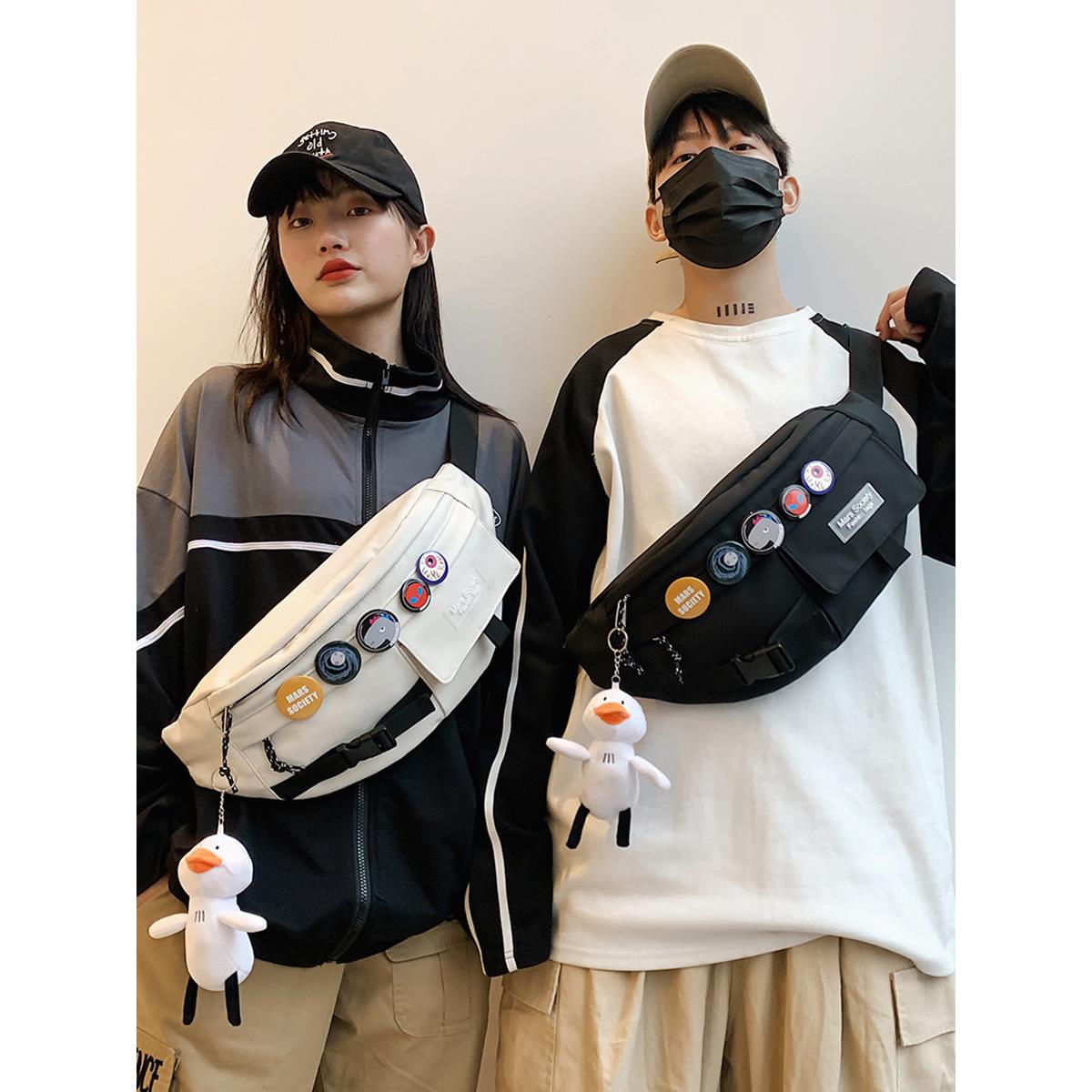 潮牌斜挎包男士休闲日系小背包胸包斜跨女单肩包男潮学生运动腰包