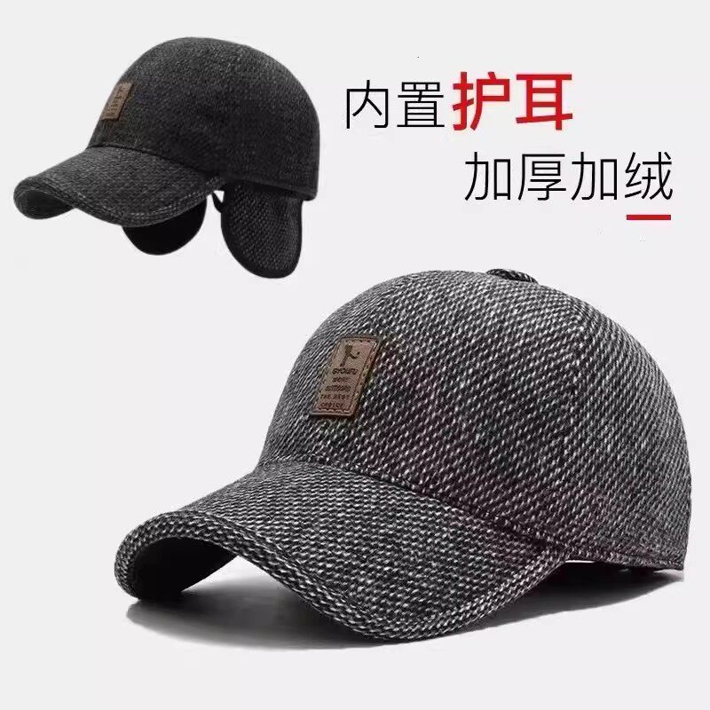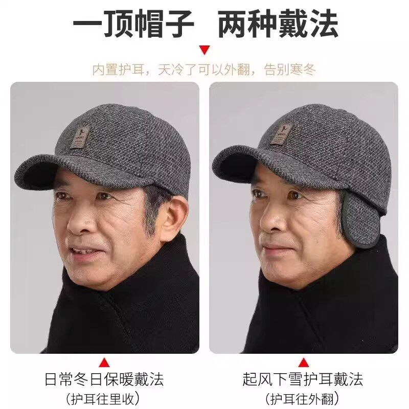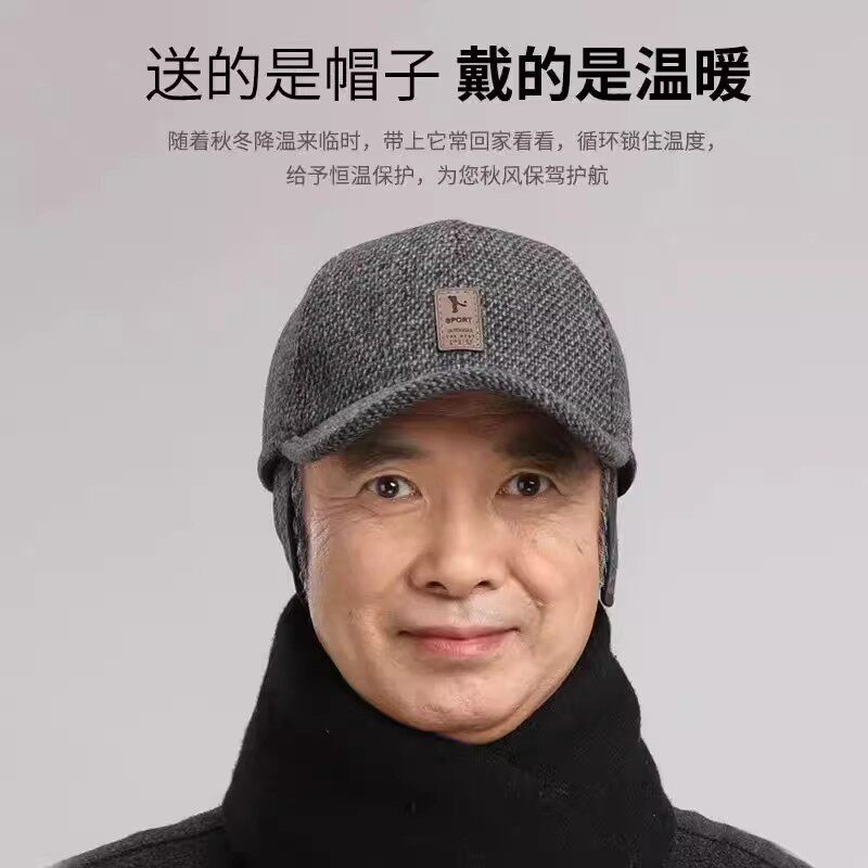中老年人帽子男秋冬季保暖老人护耳鸭舌帽老头爸爸爷爷加绒棒球帽