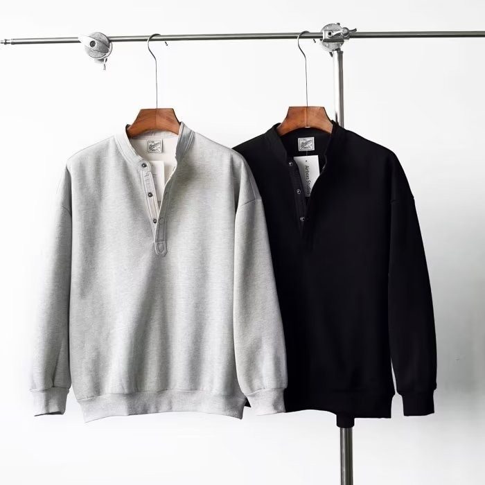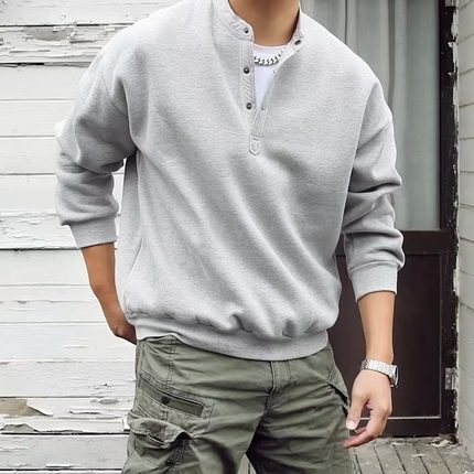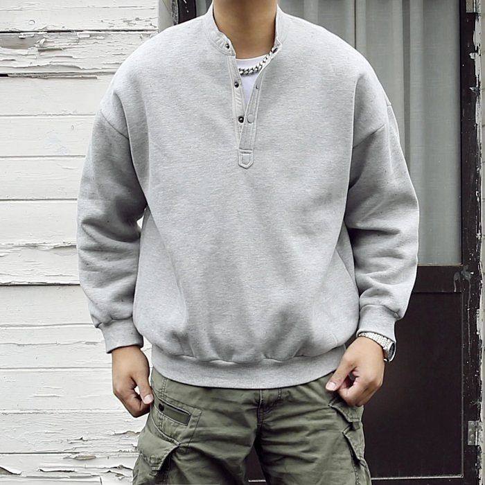 300斤大码男装亨利领门襟保暖时尚休闲圆领套头衫卫衣男春秋款潮