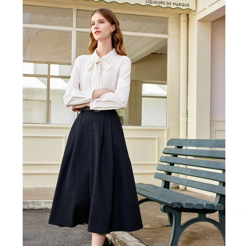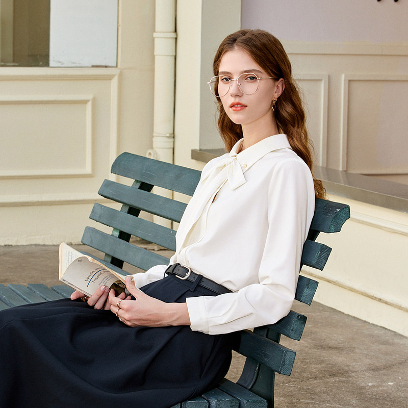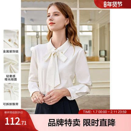 百图可拆卸飘带白衬衫可甜可盐百搭通勤长袖衬衫女