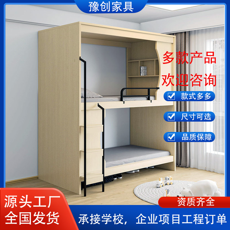 新款太空舱上下床宿舍床高低床双层床颗粒板实木钢木学校 家具铁