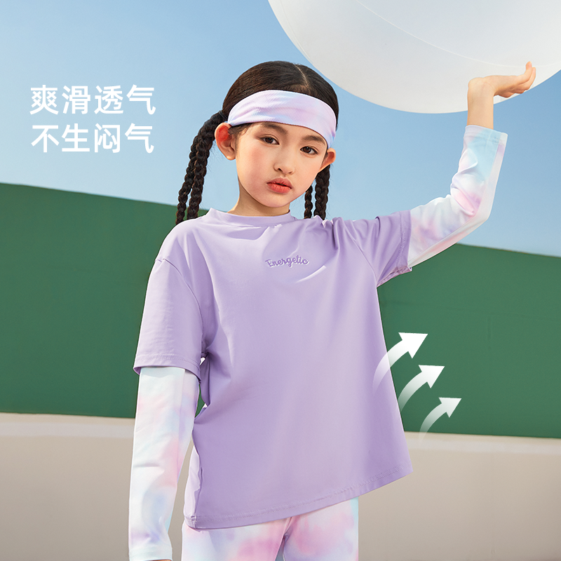 [防晒]女童T恤春夏大童运动假两件上衣儿童抗菌衣服5宝宝夏装女宝