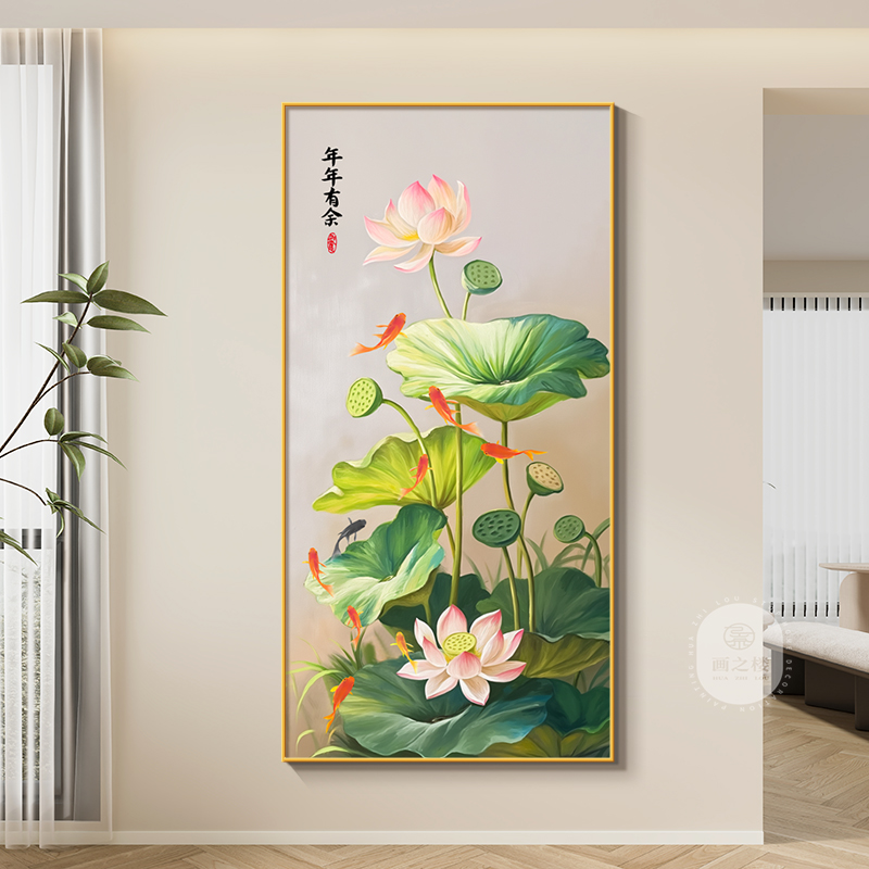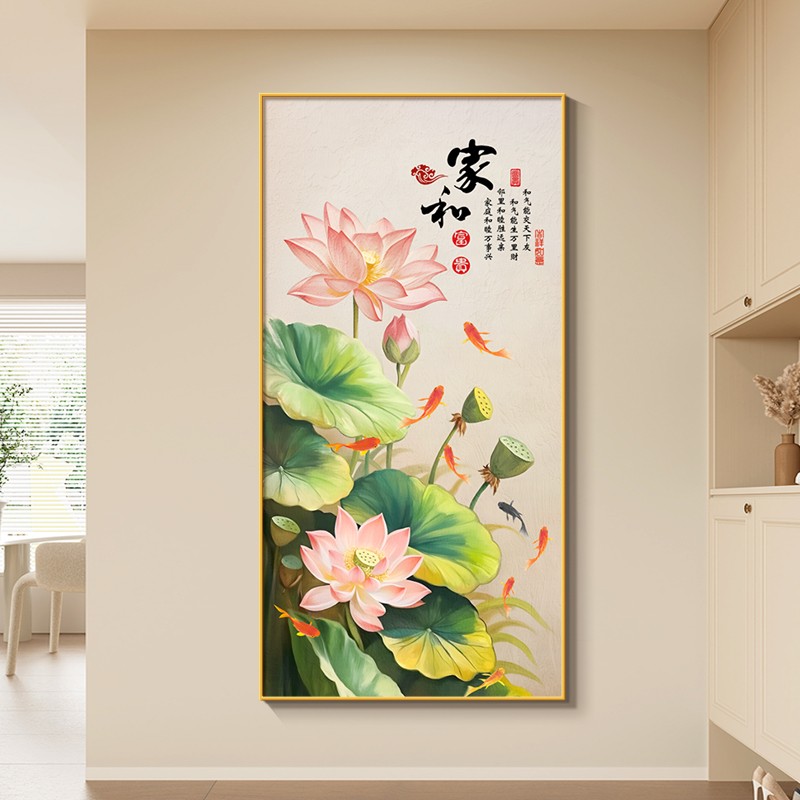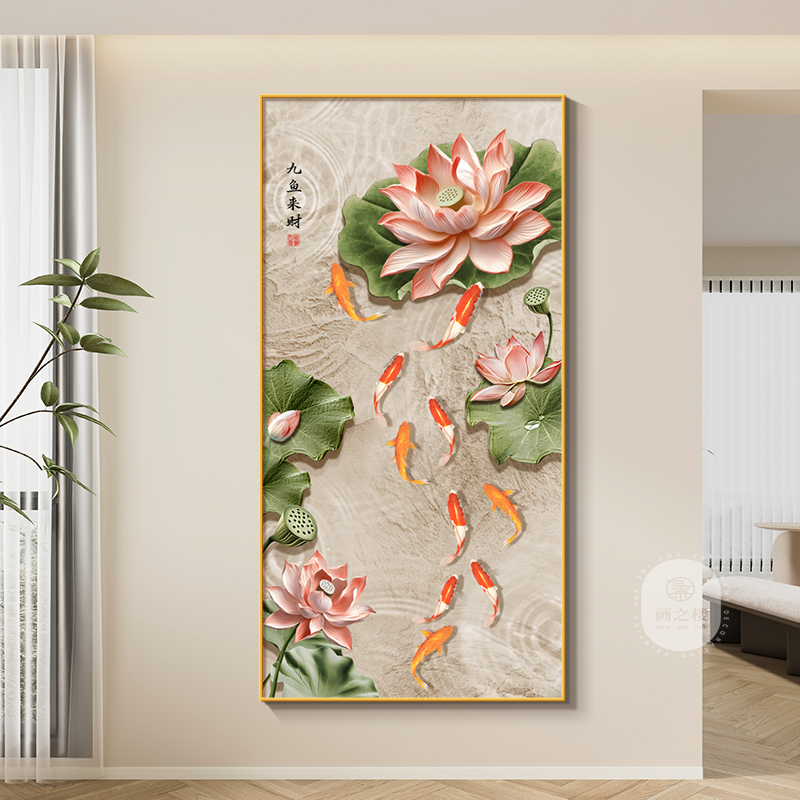 家和万事兴玄关装饰画荷花九鱼图走廊过道挂画新中式2024新款壁画