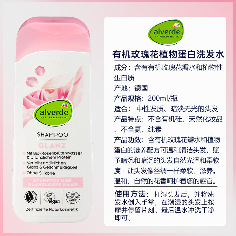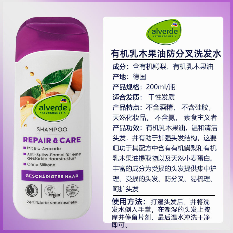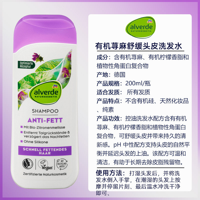德国进口Alverde艾薇德有机洗发水舒缓头皮控油去屑柔顺修复多款