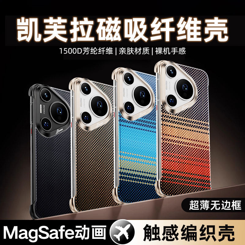 适用华为pura80pro无边框手机壳+磁吸充电pura80ultra凯芙拉超薄PC硬壳pura80磨砂防指纹裸机保护套男女新款