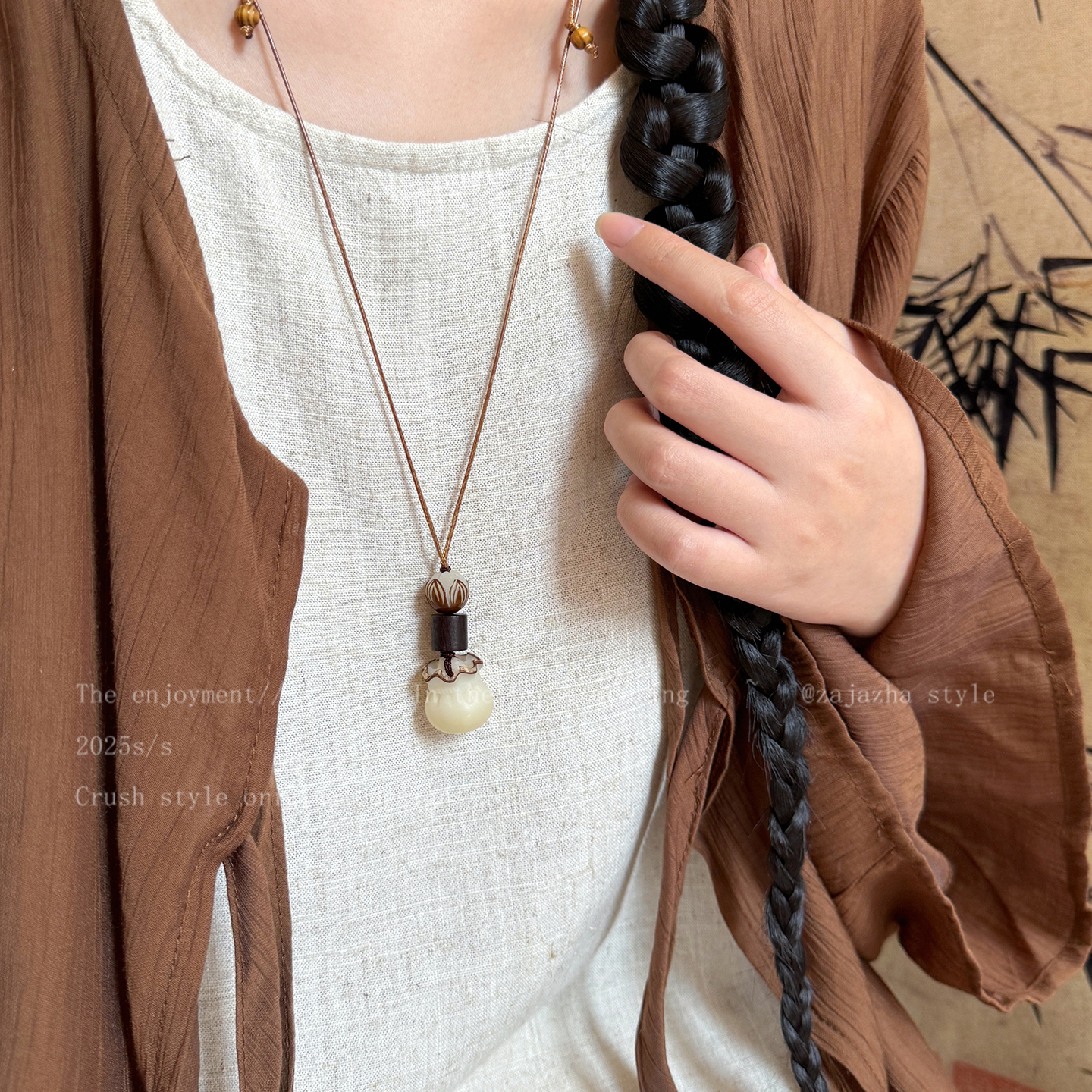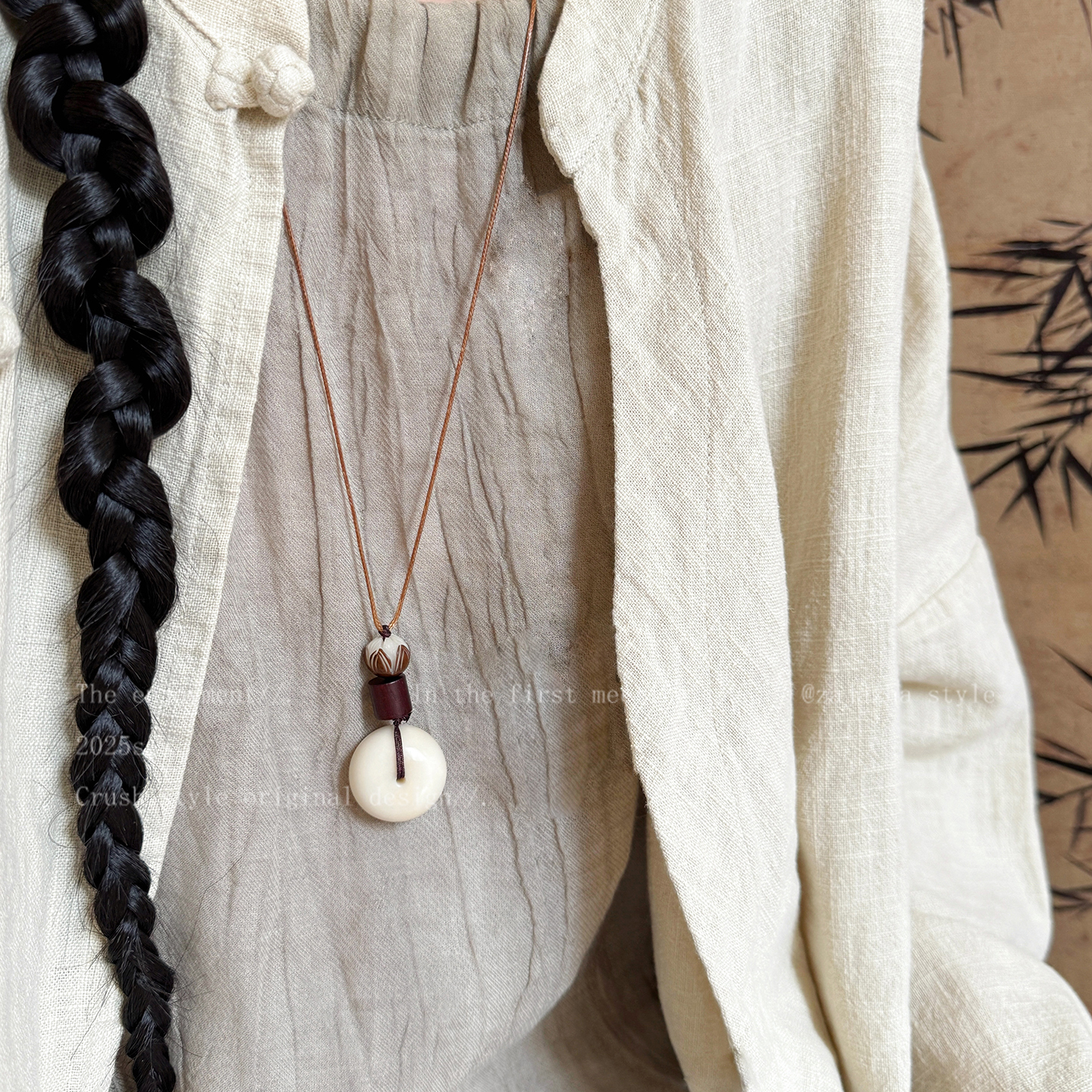 古风白玉菩提平安扣吊坠项链女新中式复古民族风禅意长款装饰配饰