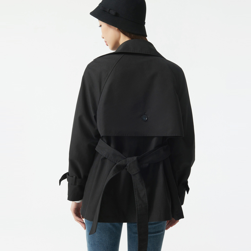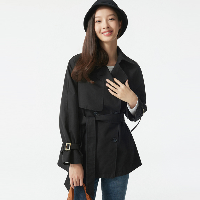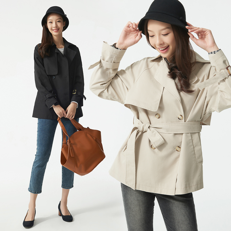 布景风衣女短款秋季新款简约通勤西装领双排扣可收腰宽松外套0104