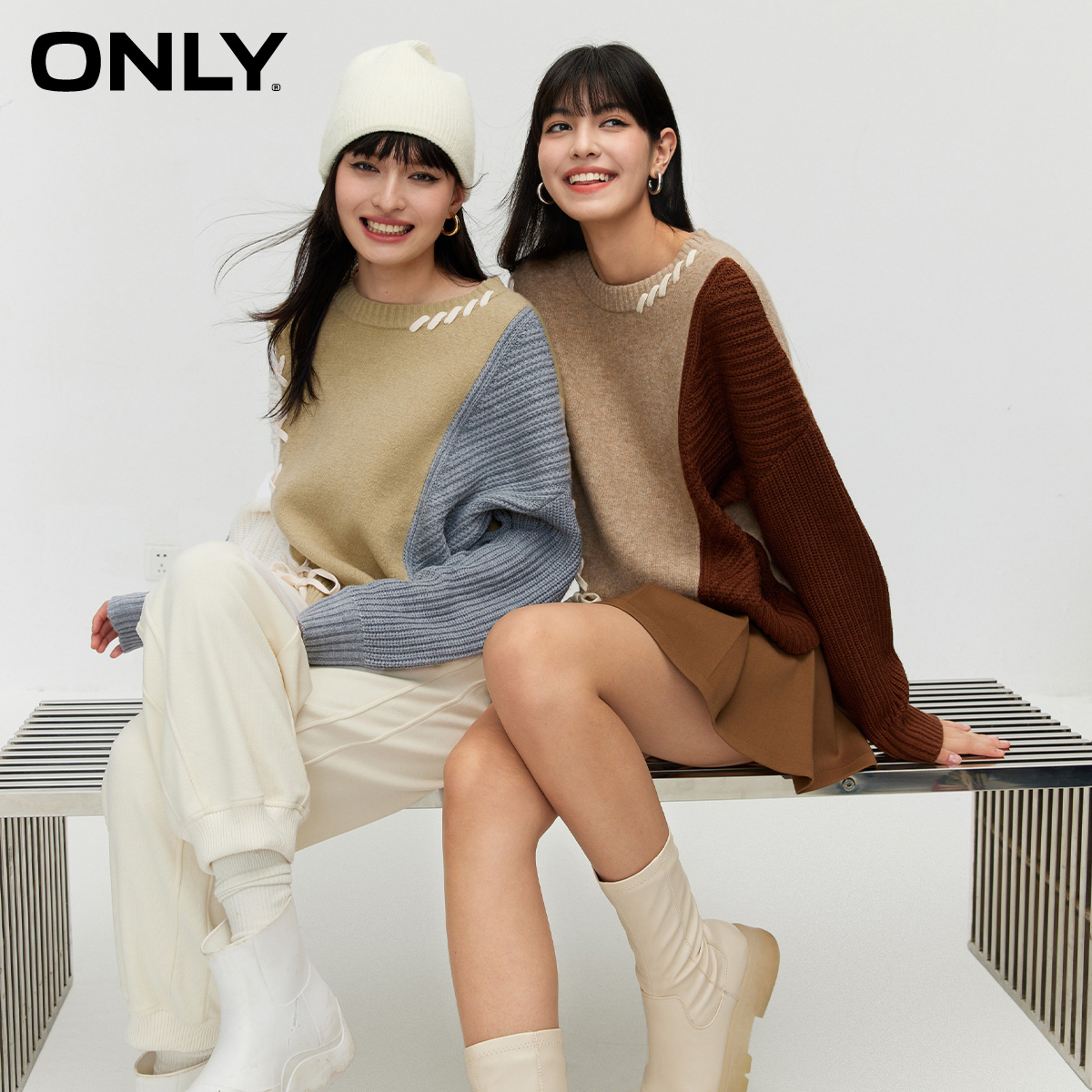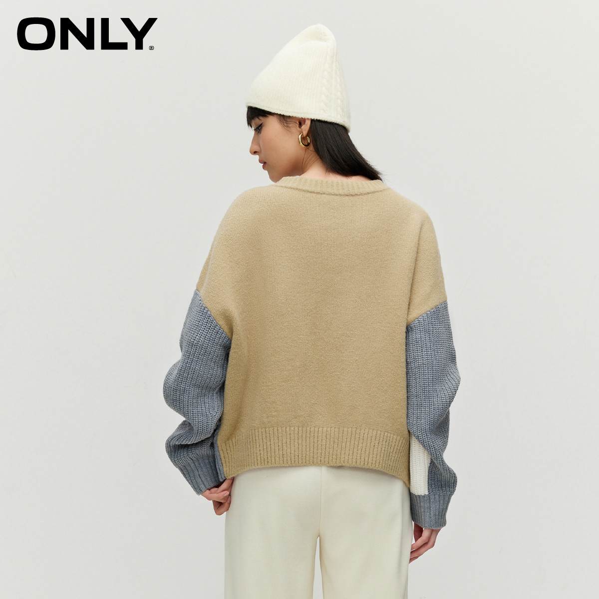 ONLY冬季通勤风百搭休闲拼色毛衣圆领针织衫女