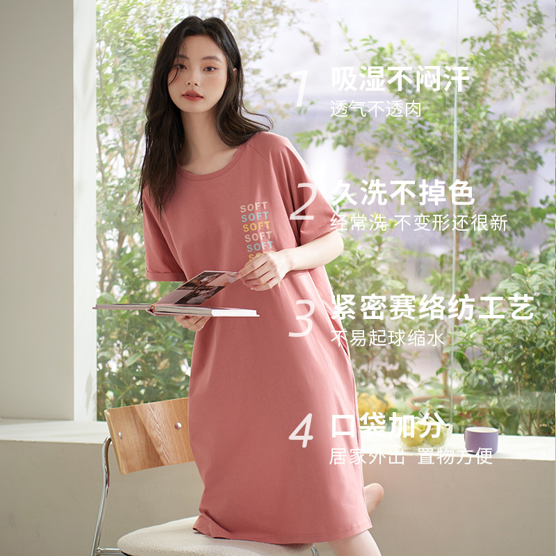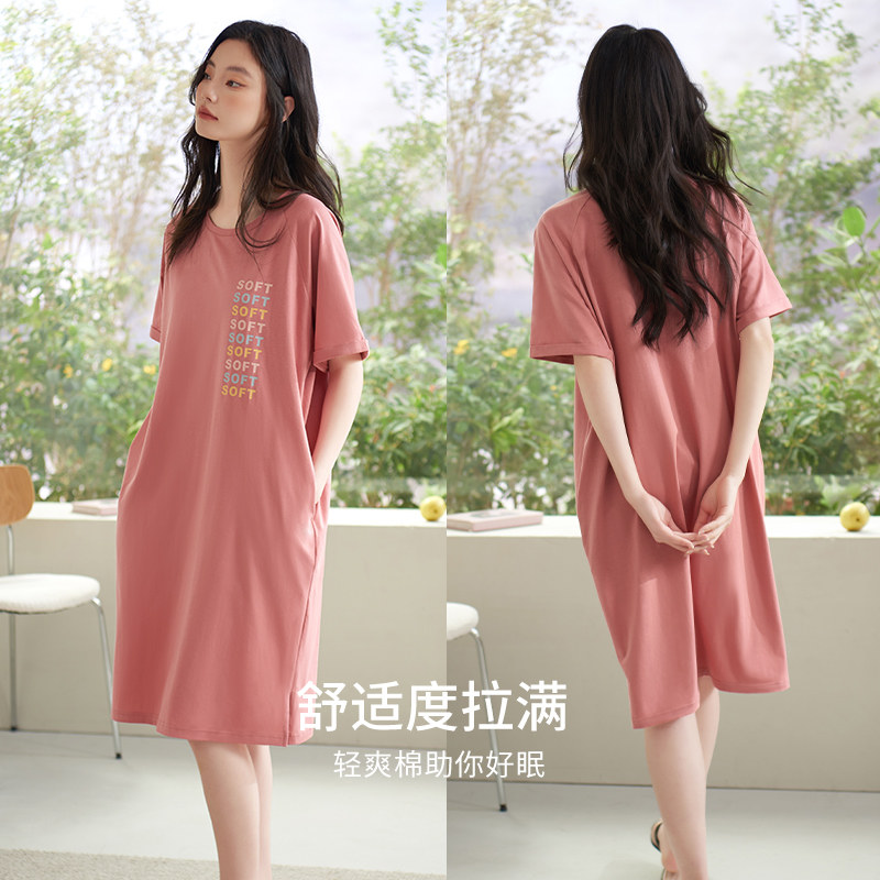 女士短袖纯棉休闲家居服睡裙