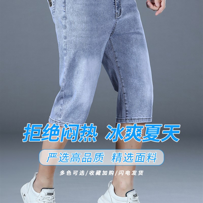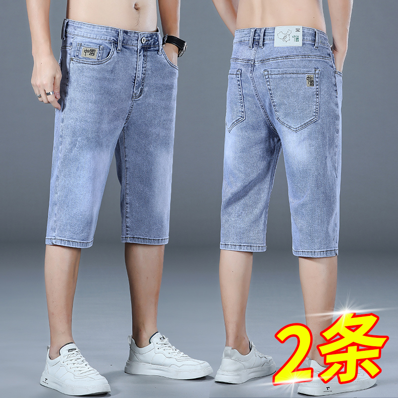 浅色牛仔裤男夏季薄款复古水洗六七分休闲短裤男2022新款宽松直筒