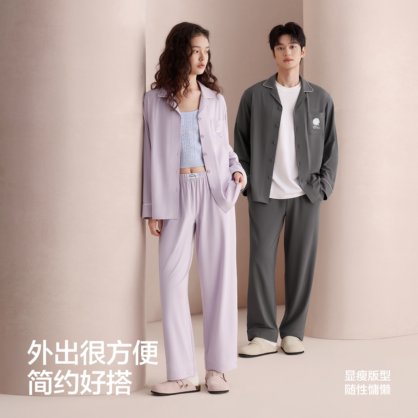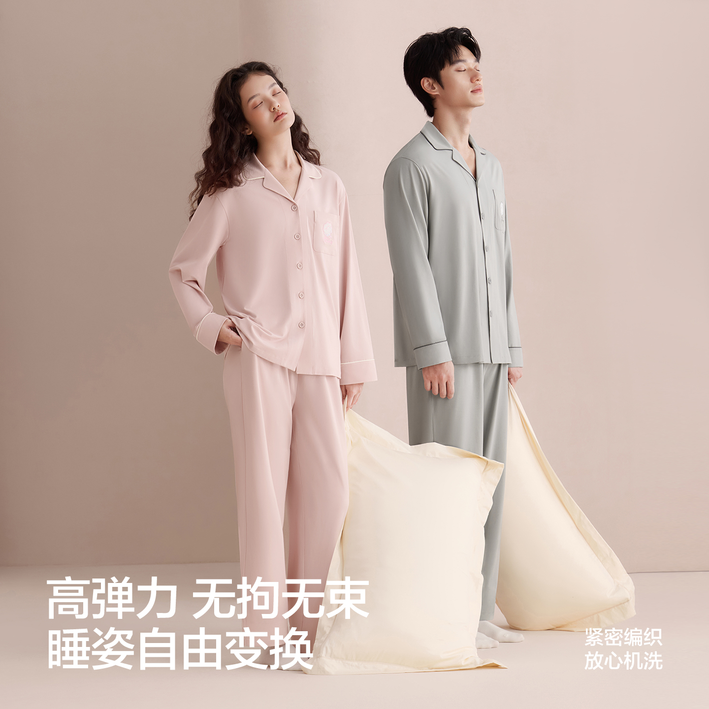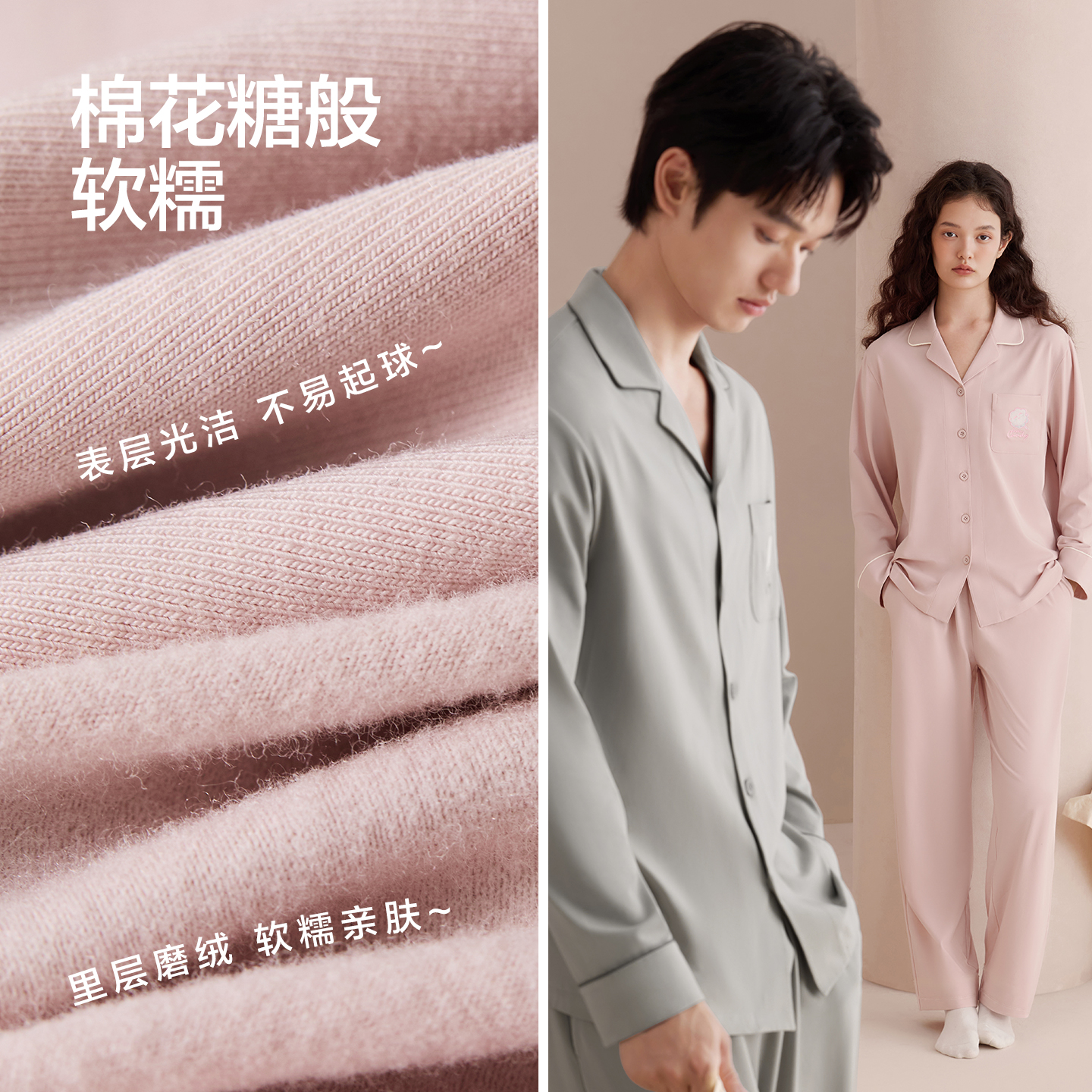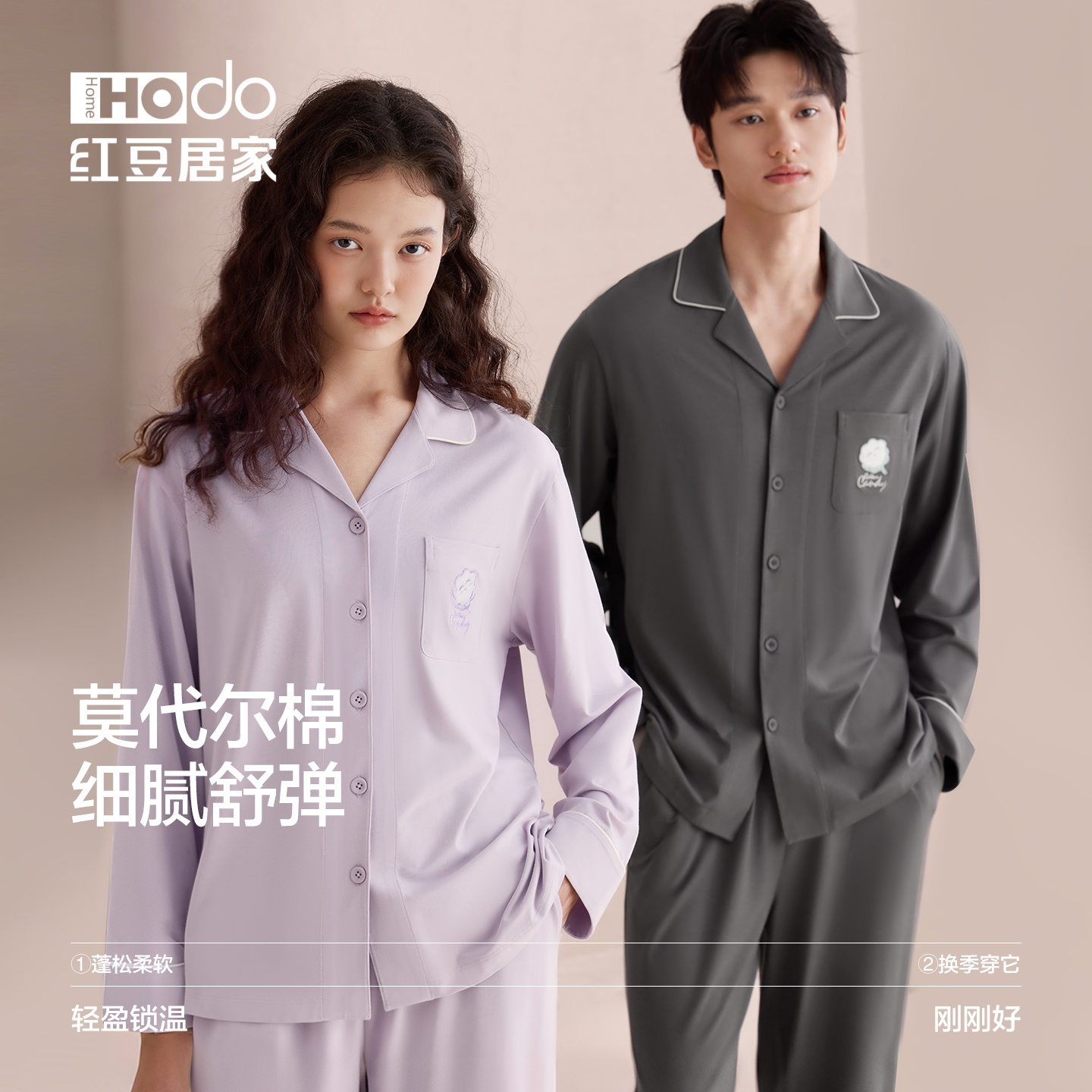 红豆柔柔棉情侣睡衣棉莫代尔长袖男女超柔软磨毛家居服套装春秋款