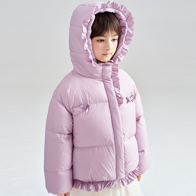 笛莎童装女童羽绒服冬季新款儿童中大童宝宝加厚保暖外套连帽甜美