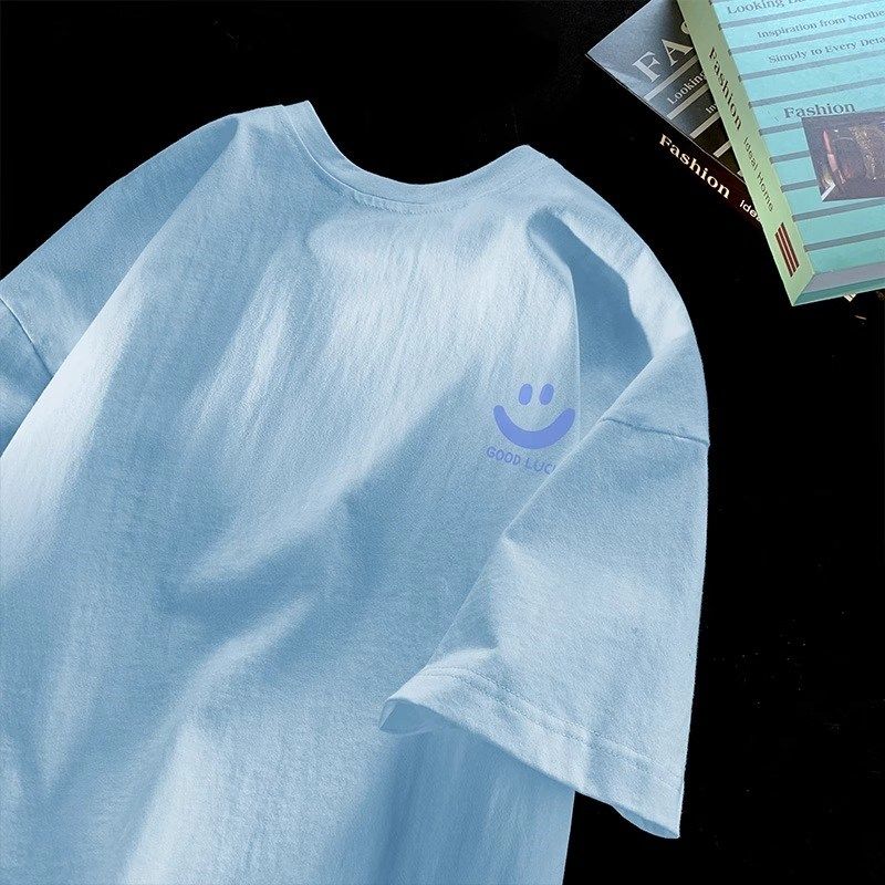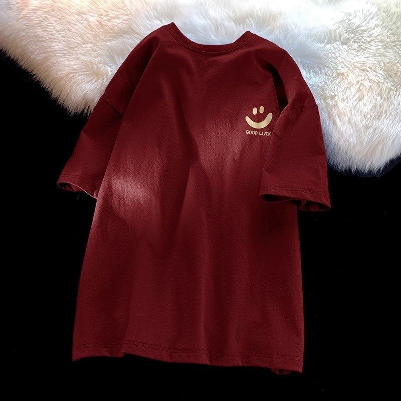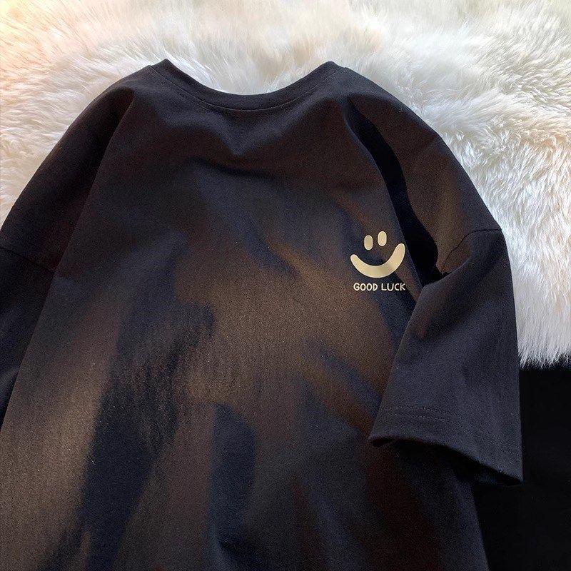 300斤大码男装白色纯棉短袖t恤男夏季新款重磅笑脸简约宽松半截袖