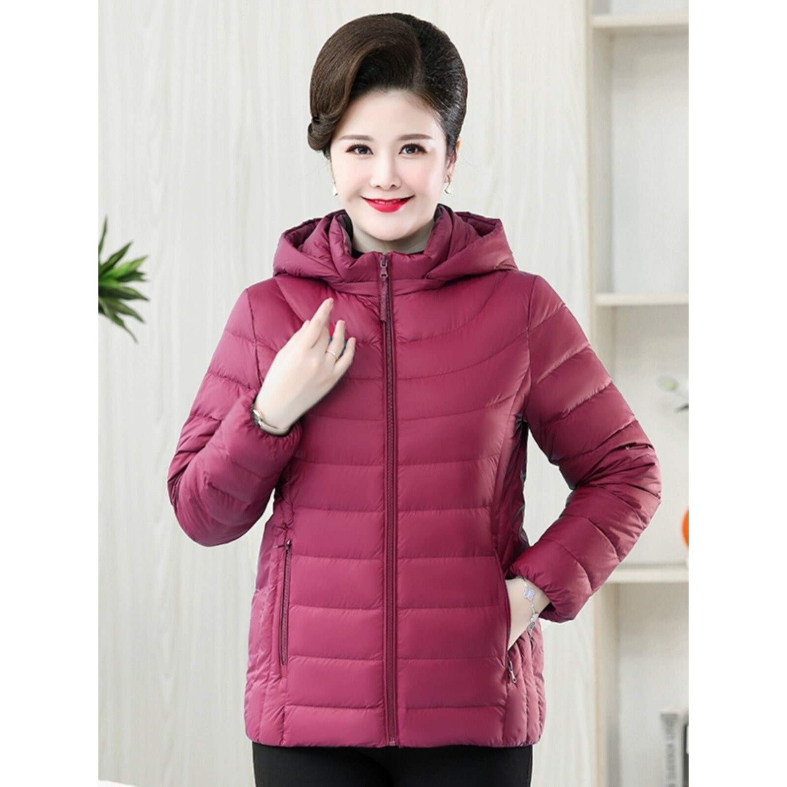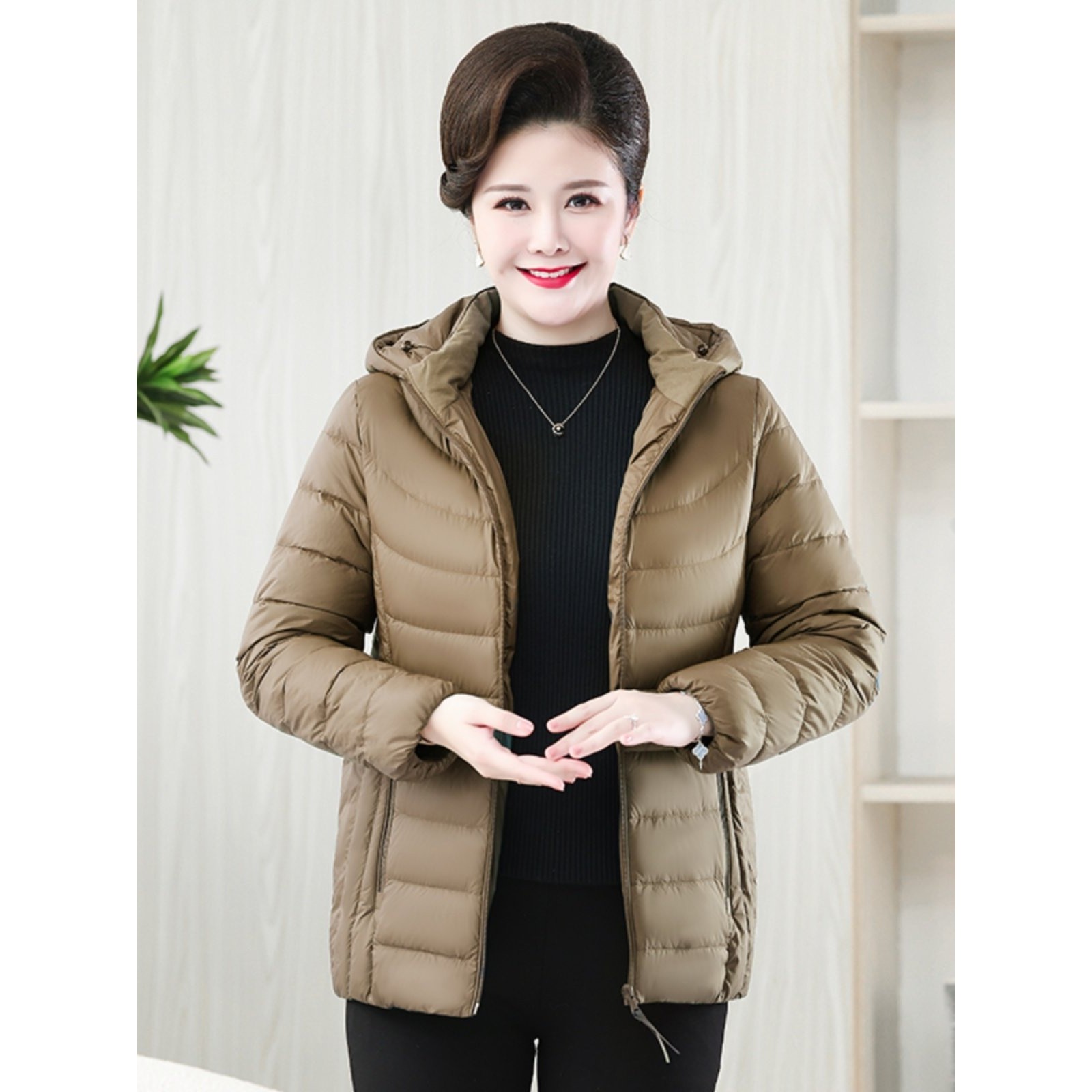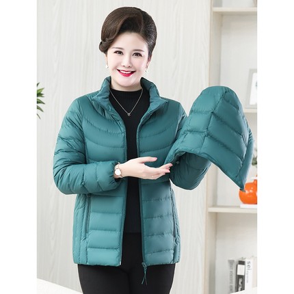 凯乐石薄荷中老年轻薄款羽绒服女可脱卸拆帽加肥加大码妈妈装白鸭