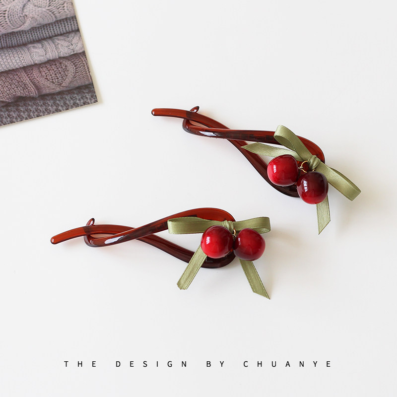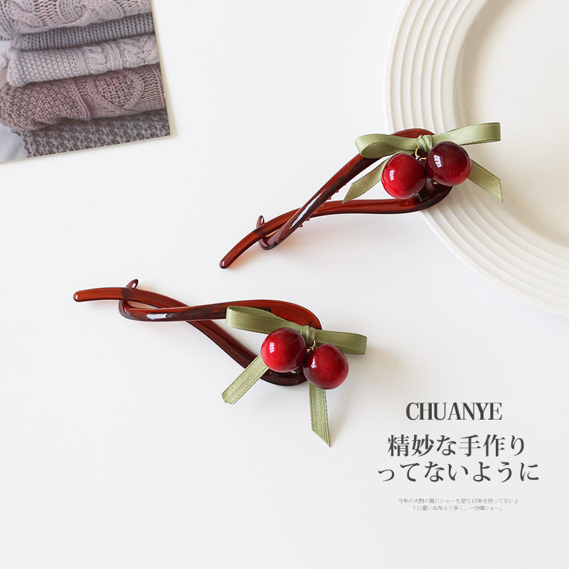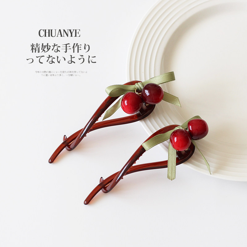 川野精致车厘子丸子头抓夹女2025新款扭扭夹一字夹发夹后脑勺发卡