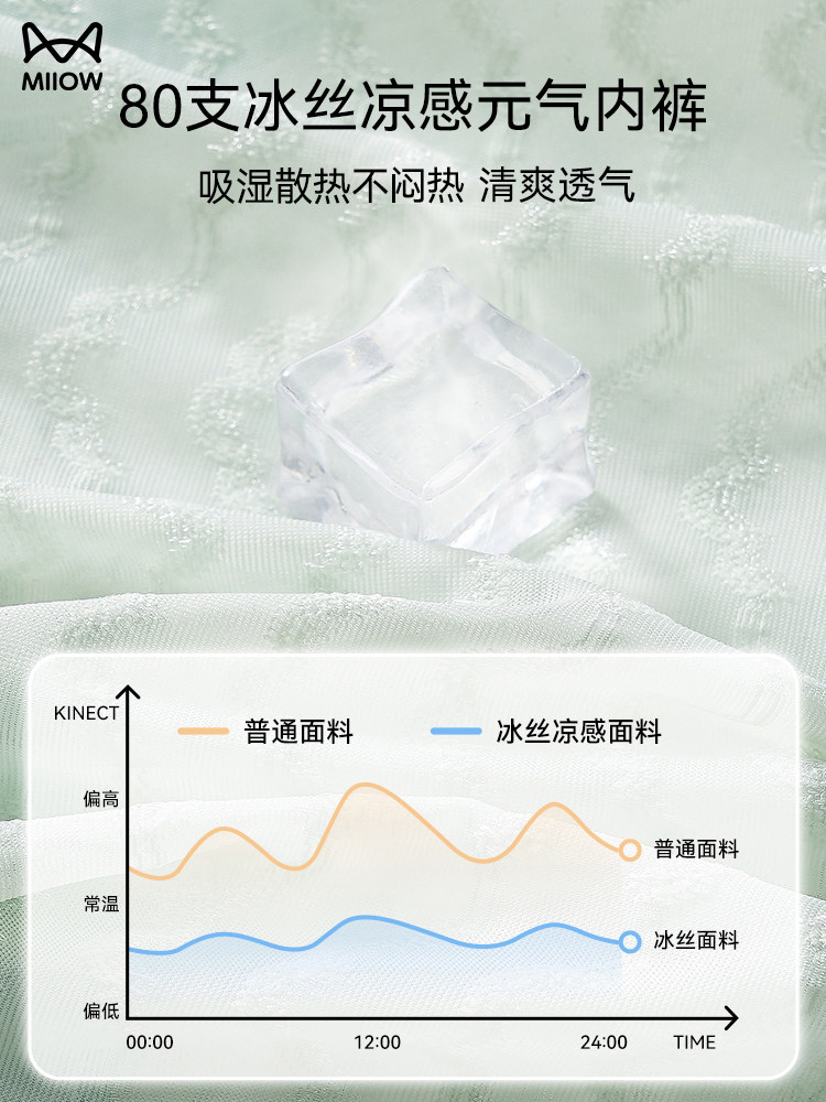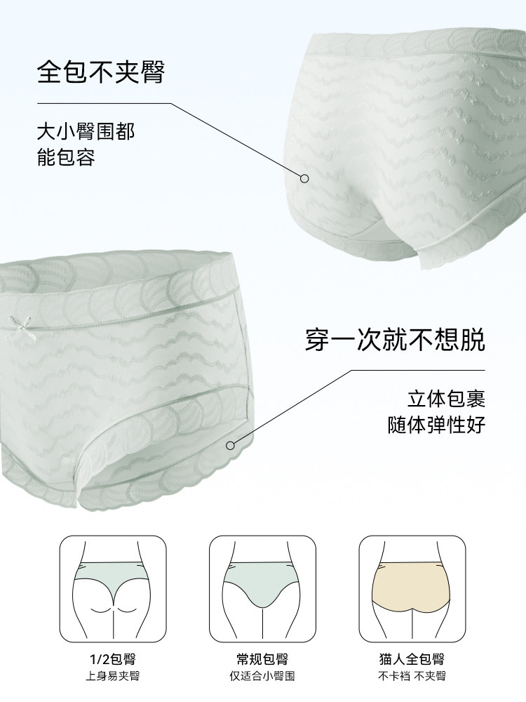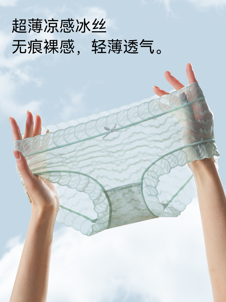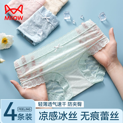 猫人冰丝内裤女性感蕾丝无痕透气