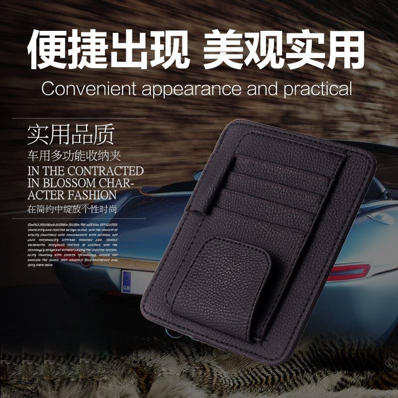 汽车皮纹车用遮阳板票据夹档眼镜夹卡片4色pu荔枝纹高速/加油卡
