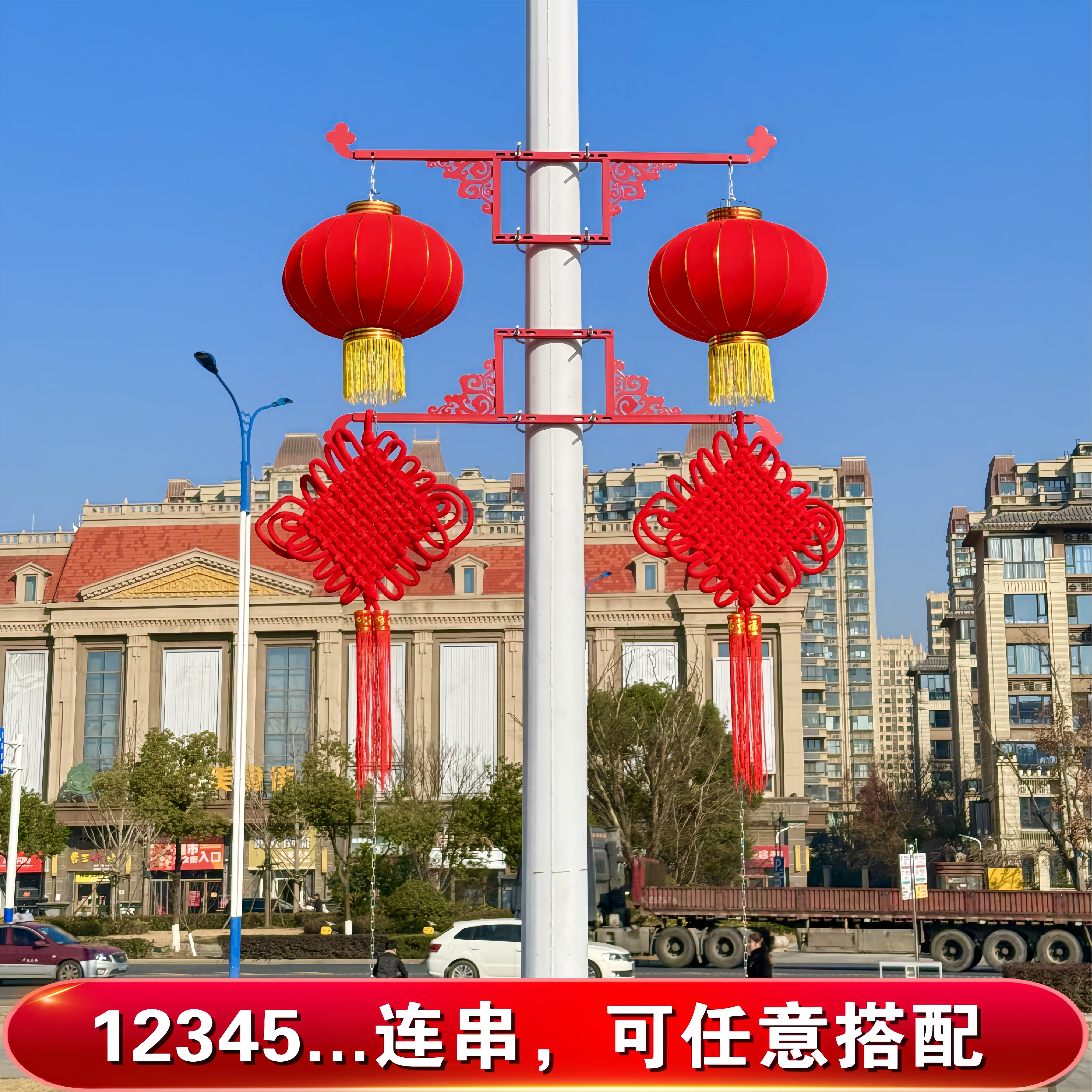灯笼户外大红灯笼串带灯装饰亚克力灯笼支架定制中国结路灯杆灯笼