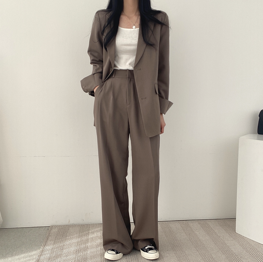 韩国chic春季休闲翻领两粒扣西装外套+高腰垂坠拖地阔腿西裤长裤