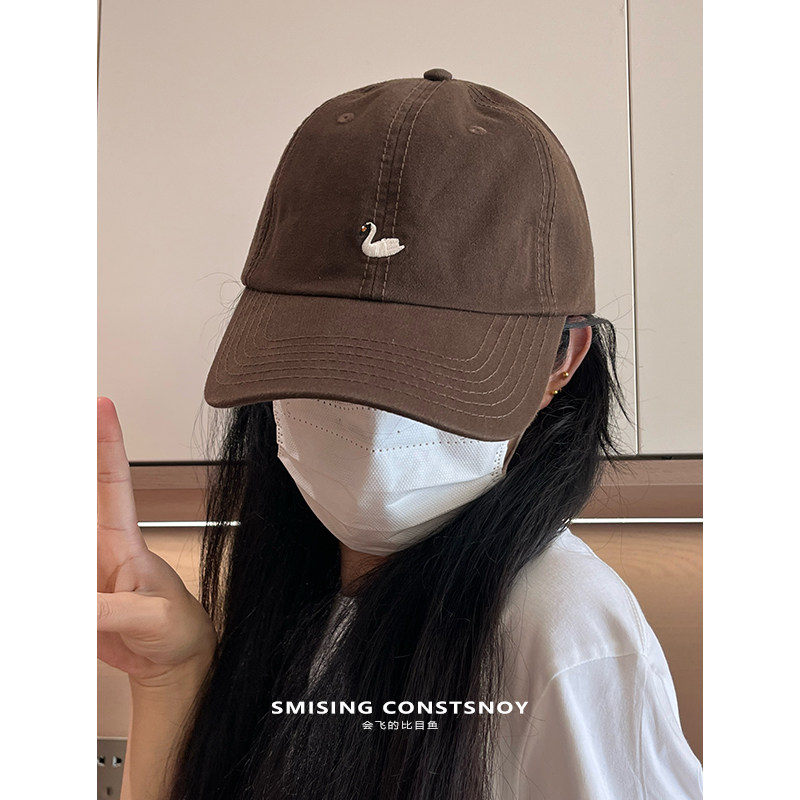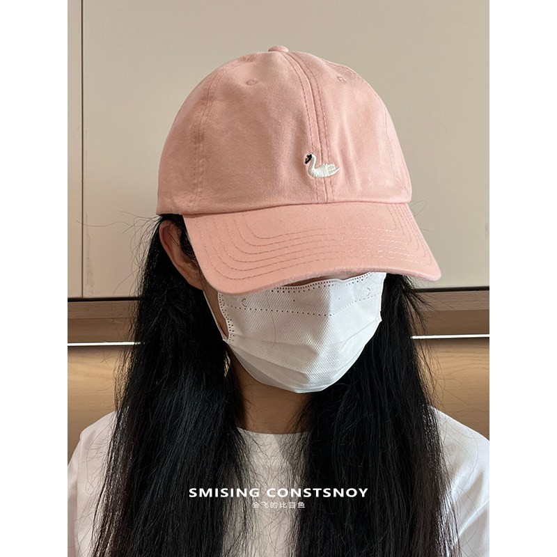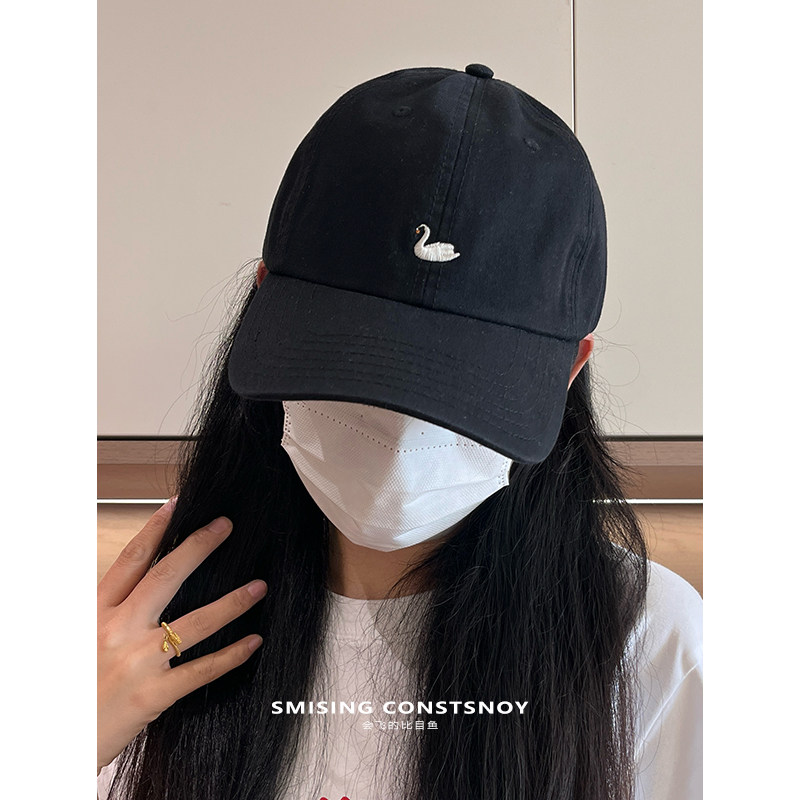 日系卡通可爱天鹅刺绣软顶棒球帽女春季情侣款日常休闲百搭鸭舌帽